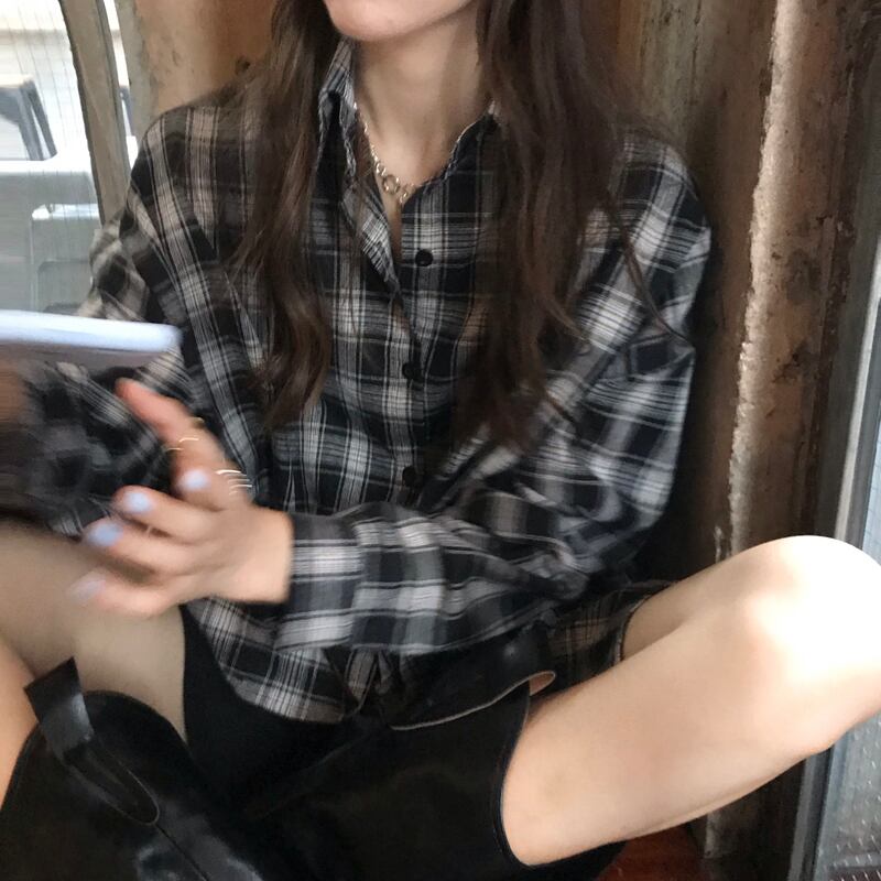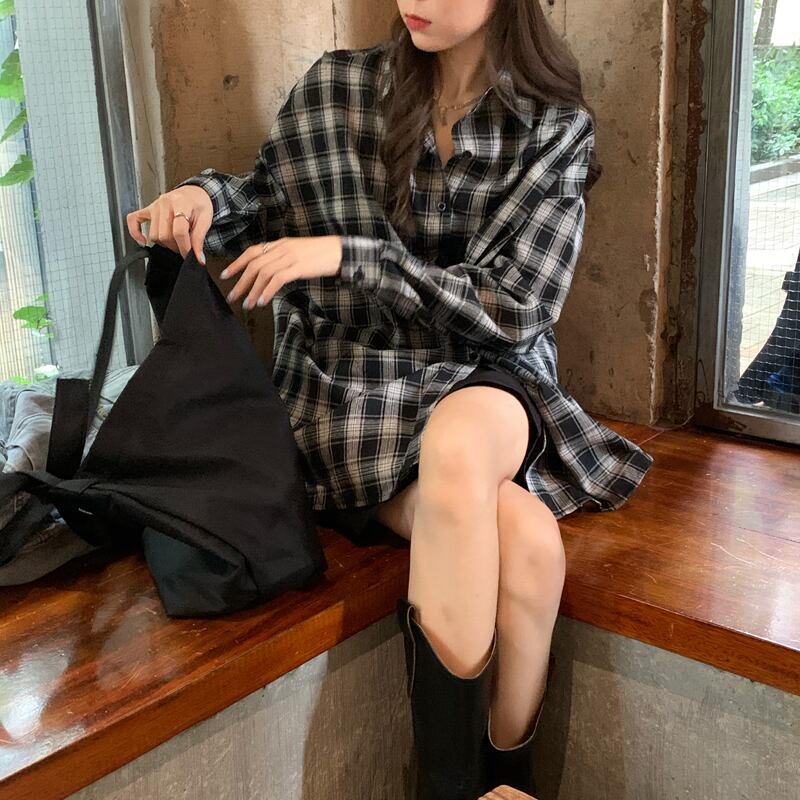 スタンダード格子柄シャツ スプリングルーズジャケット ロング レトロ 春物 モンロー403295741
