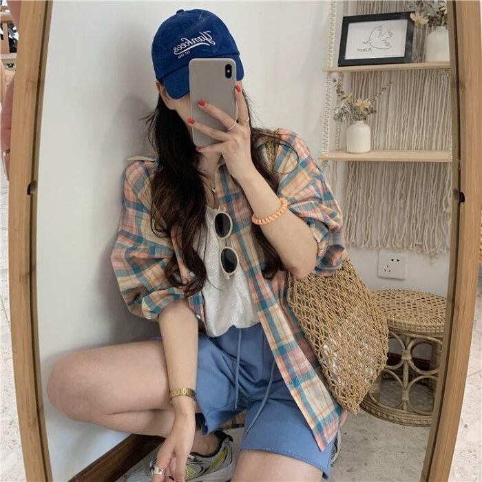 スタンダード格子柄シャツ スプリングジャケット ロング レトロ 春物 モンロー10868663273