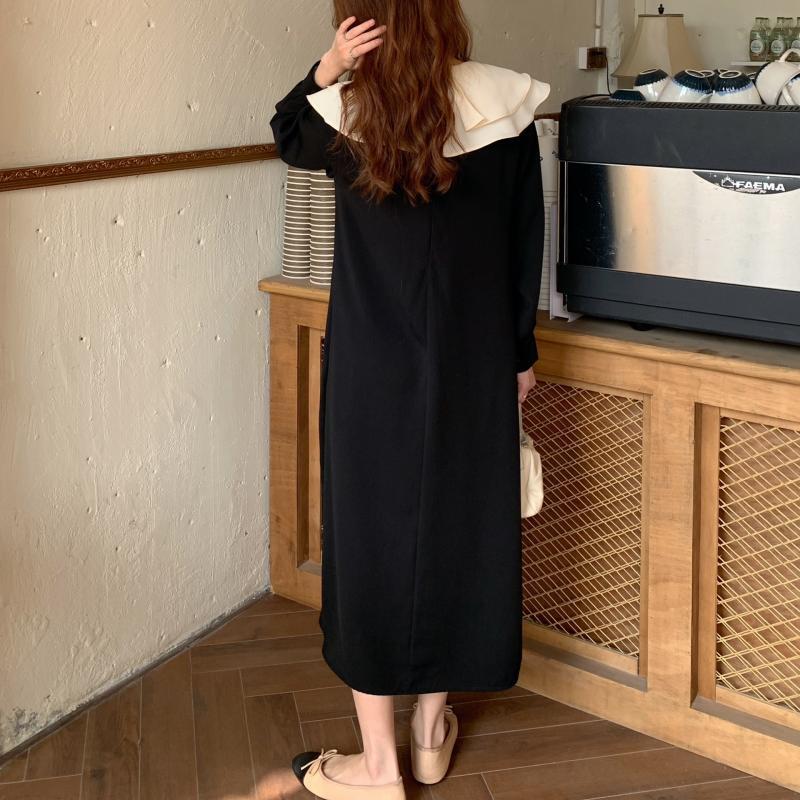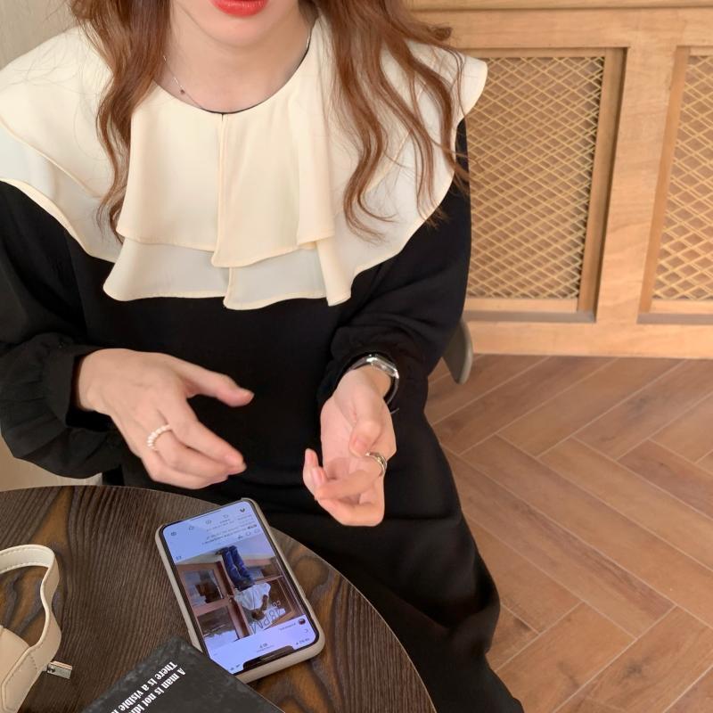 スタンダードブラックドレス ロングスカート スプリング薄手Aライン レトロ 春物 モンロー41604424245