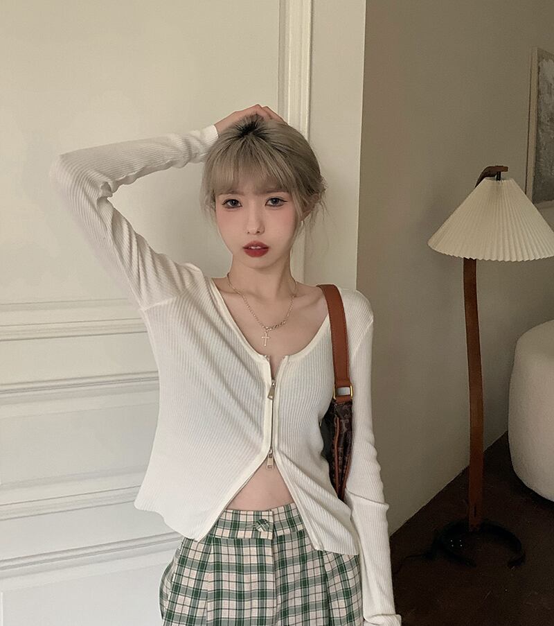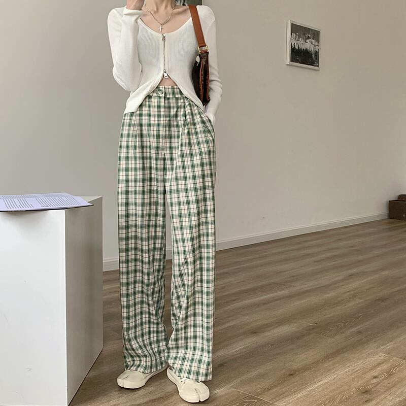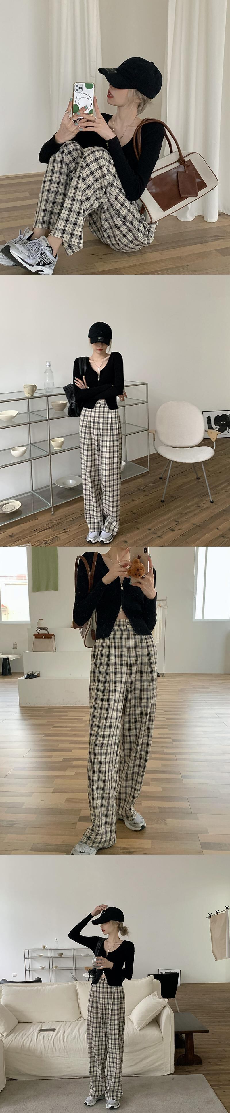 色:83061#白ニット長袖,83061#黒ニット長袖,63826#黒のチェック柄パンツ,63826#グリーンチェック柄パンツ