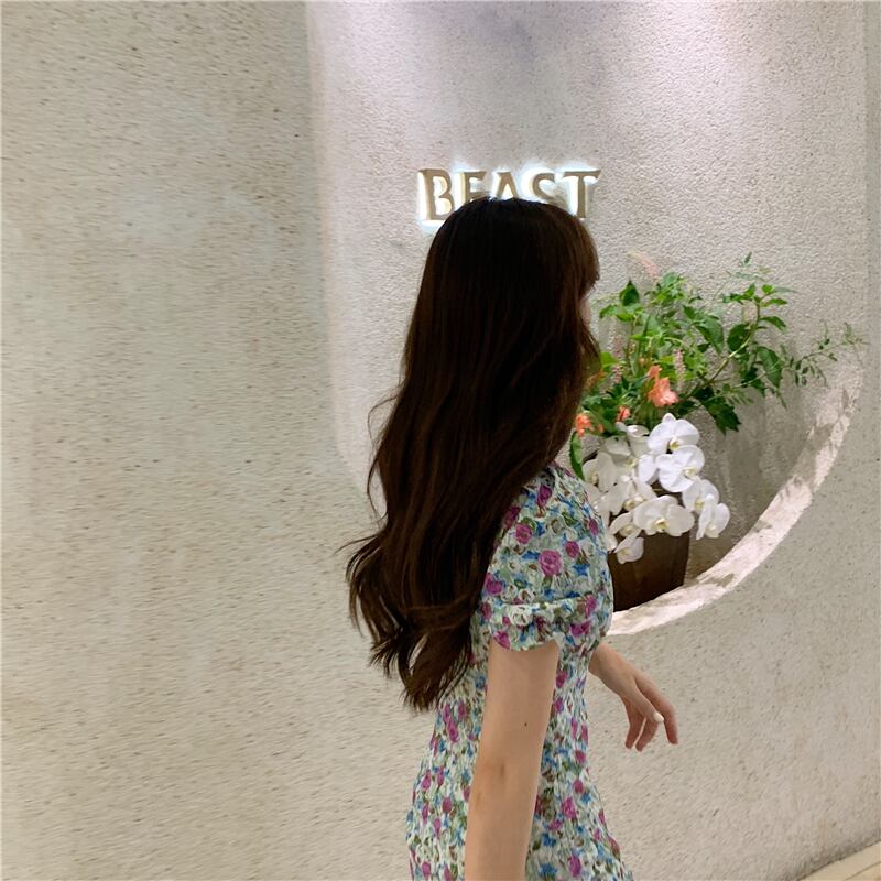 スプリングフローラルドレス ウェストプリーツスカート 春物 花柄 スクウェア モンロー37588664482