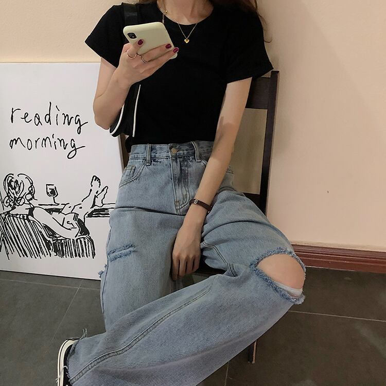 ルーズジーンズ ハイウェスト薄手パンツ スプリング 春物 モンロー62335475747