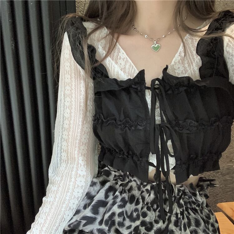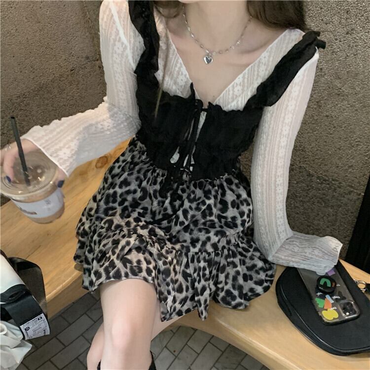 色:ヒョウ柄スカート,レースシャツ,スリング