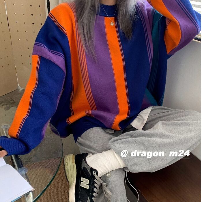 カラーセーター レディーススタンダードスタイルコート ルーズトップス レトロ モンロー38515711005