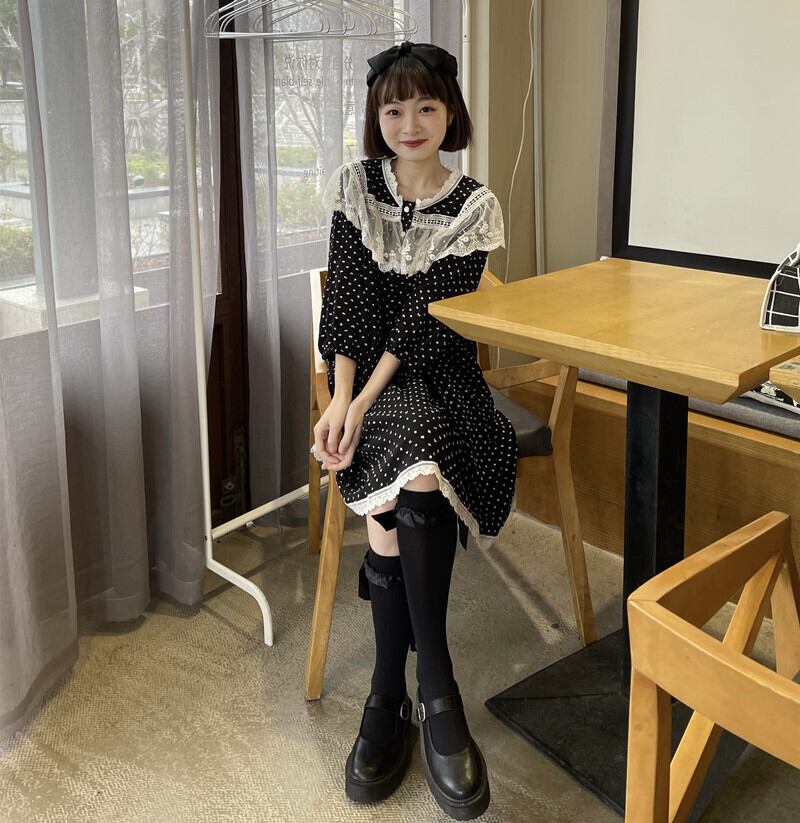 ブラックドレス スタンダードルーズスプリングショートスカート Aライン レトロ 春物 モンロー34481917814
