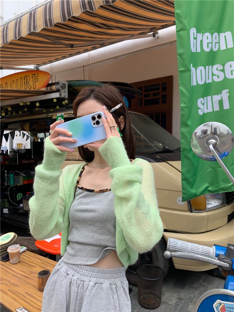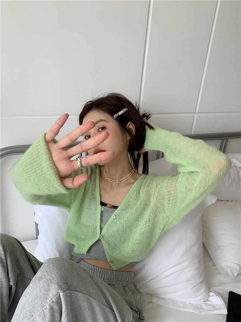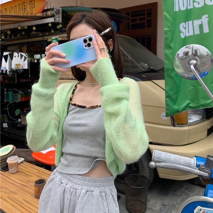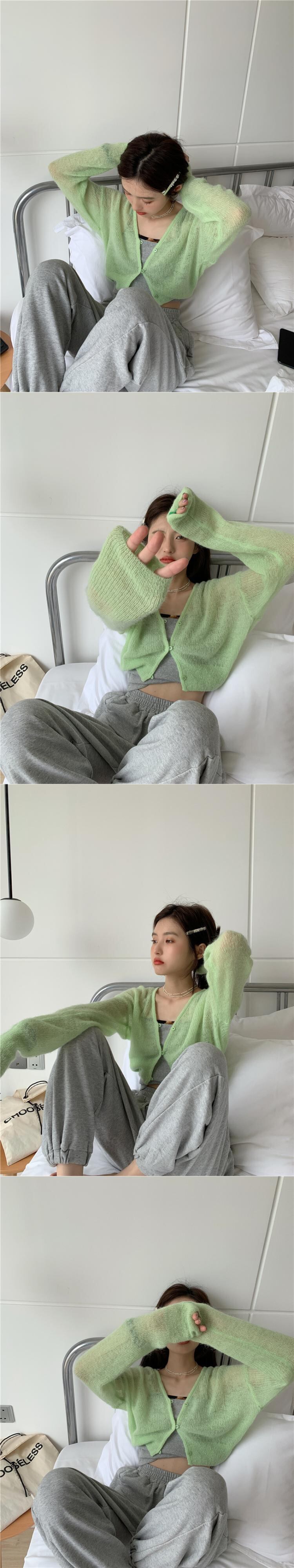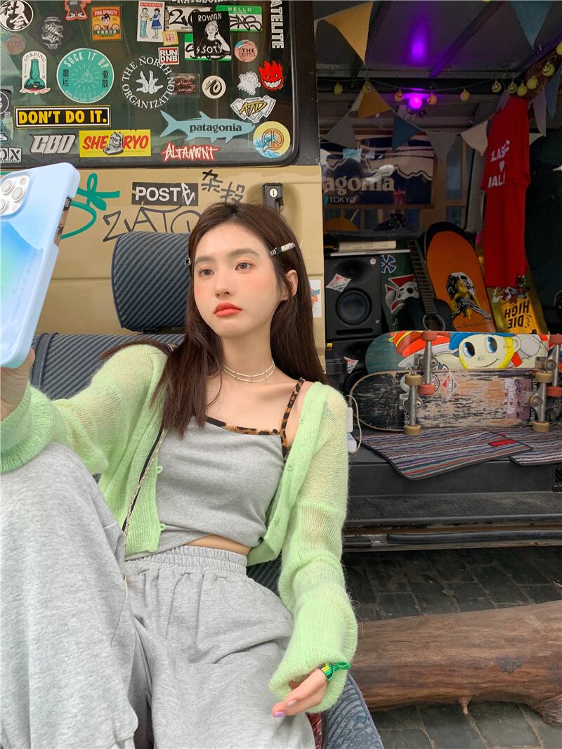 色:スリング,グリーンカーディガン