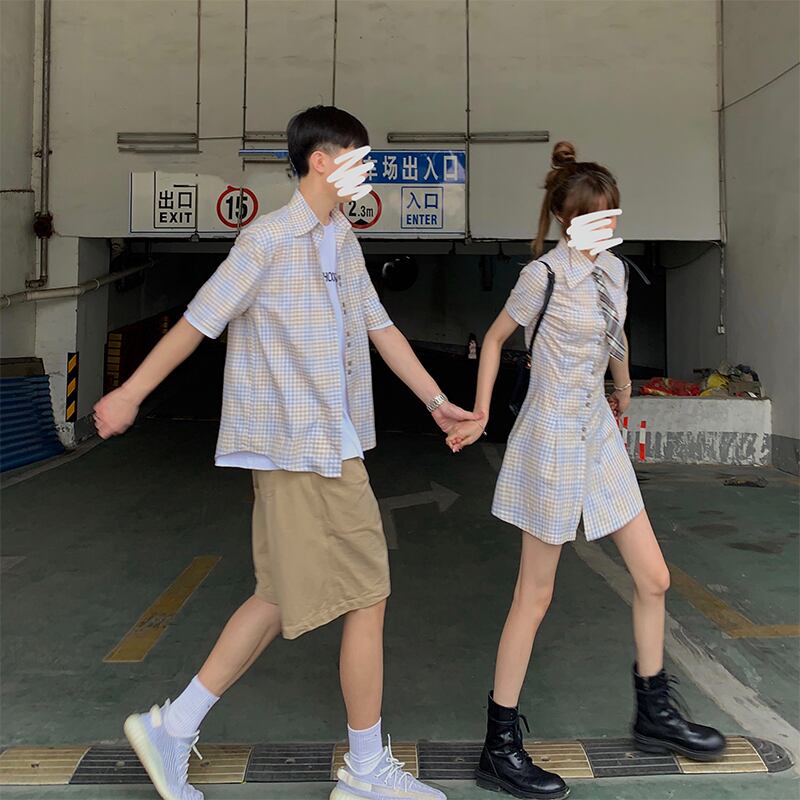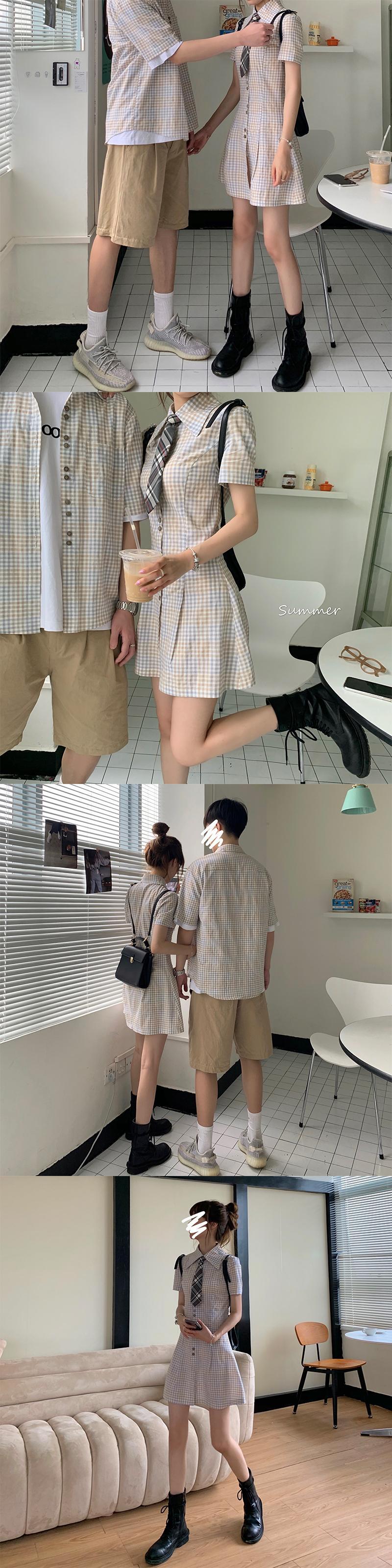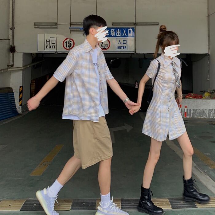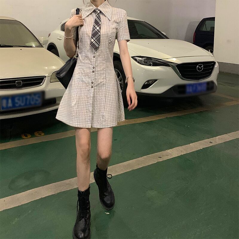 スプリング格子柄シャツ ドレス スタンダードカラー レトロ 春物 モンロー38589222597