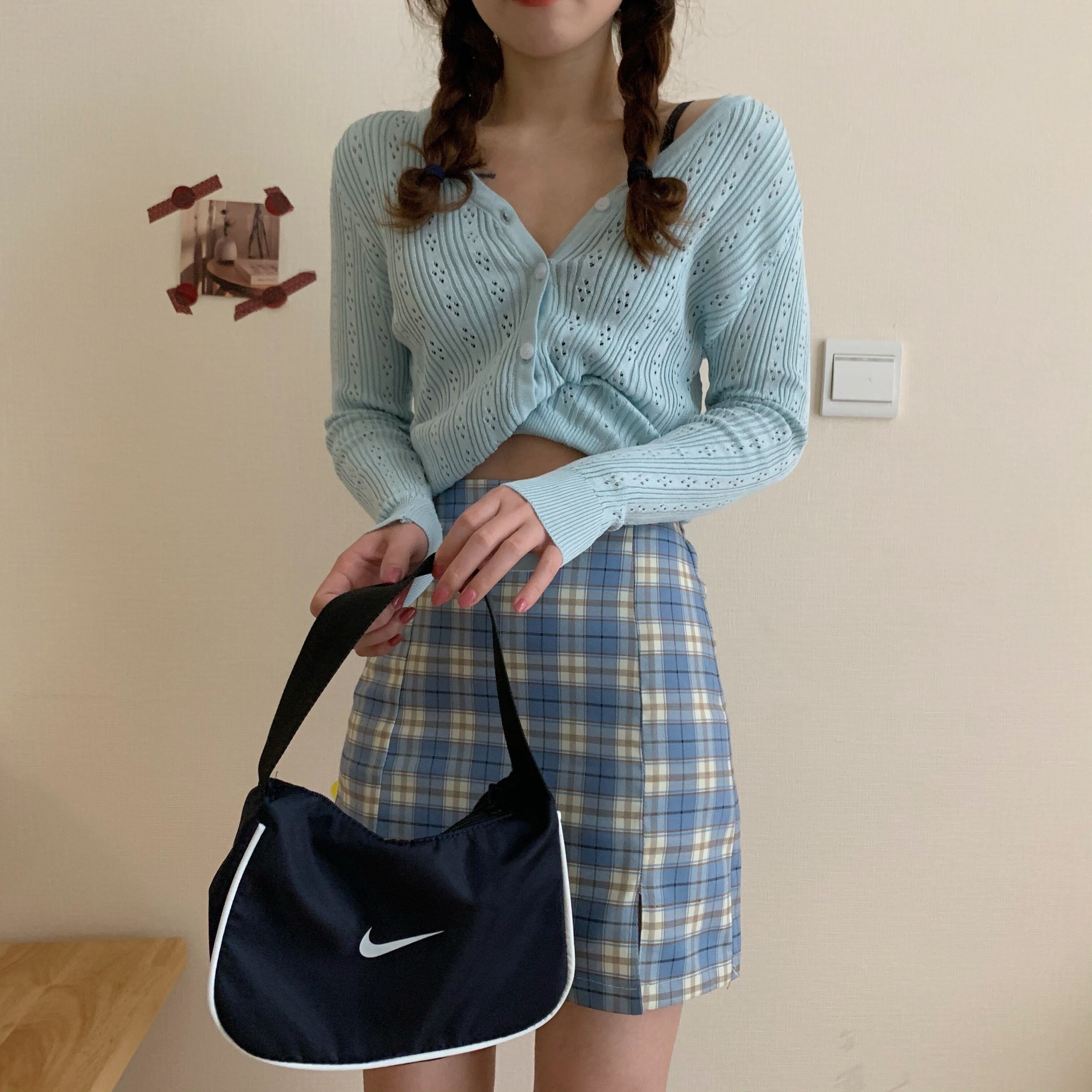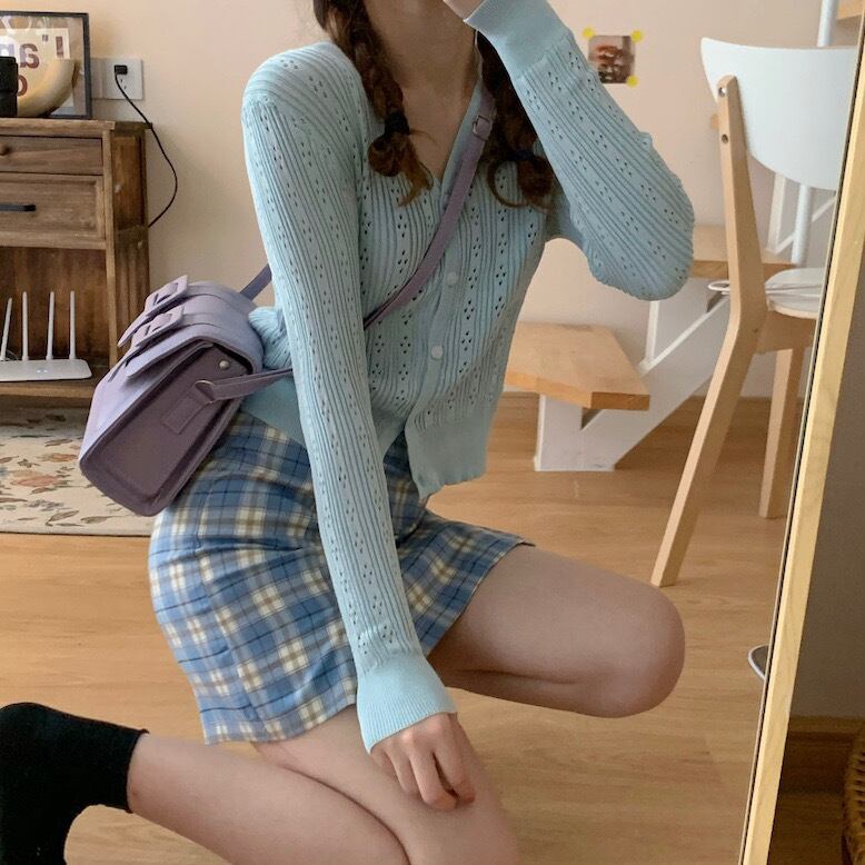 色:白い,紫の,青,黒,ブルーチェック柄スカートS,ブルーチェック柄スカートM