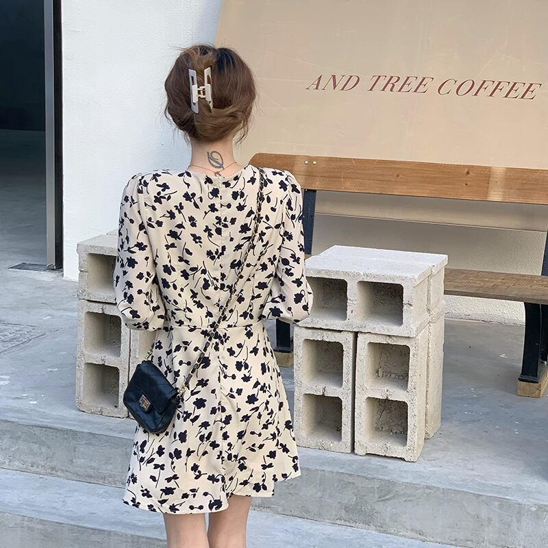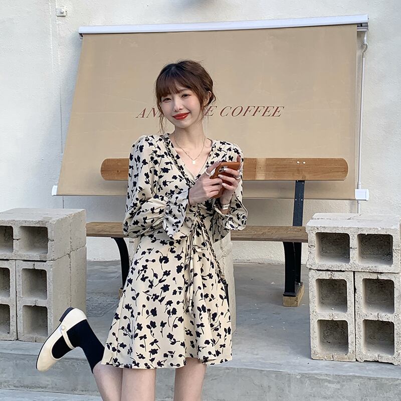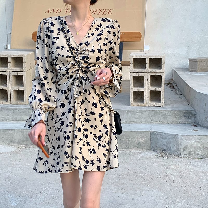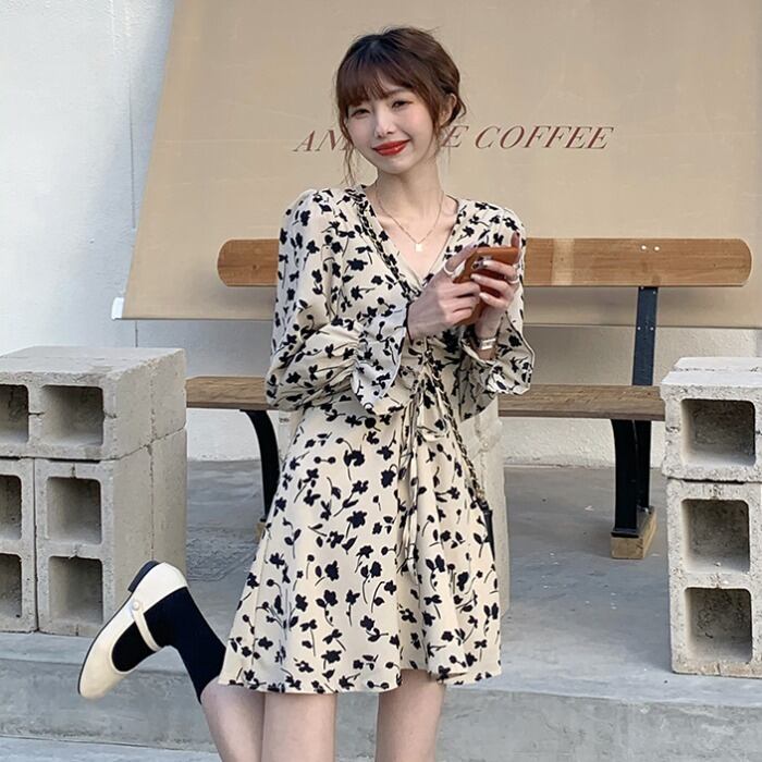 スプリングギャザーシフォンフローラルドレス 春物 花柄 モンロー37479656394