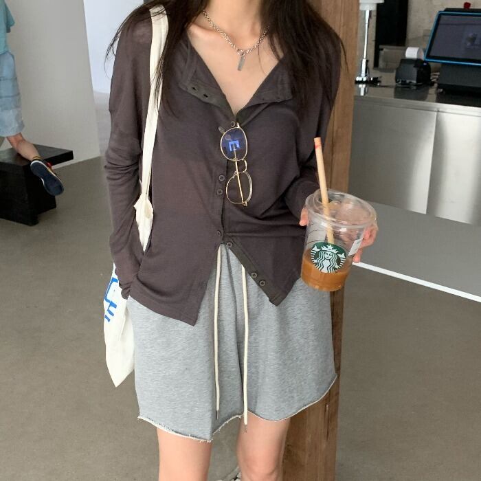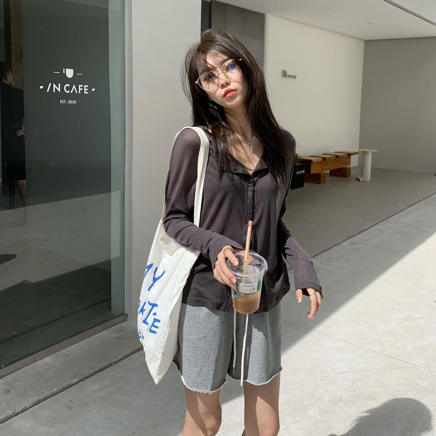 スプリング長袖スリーブラウンドネックソリッド カラーギャザーショーツ ロング 春物 ブルマー Oネック Tシャツ ソリッドカラー モンロー22145092355