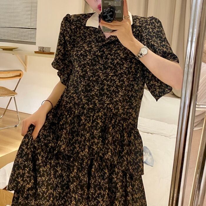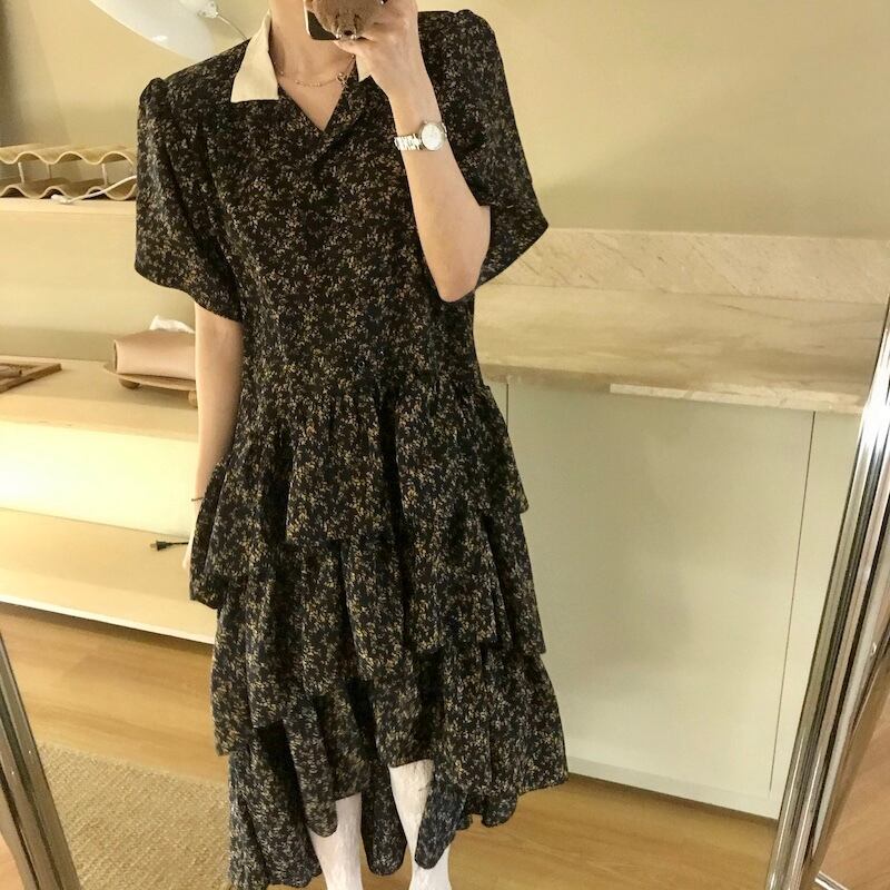 フローラルドレス スプリングスタンダードスカート ブラックロング レトロ 春物 花柄 モンロー19673003942