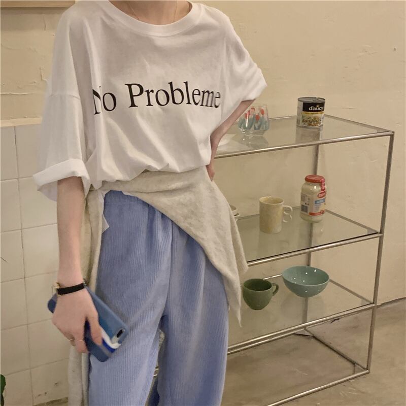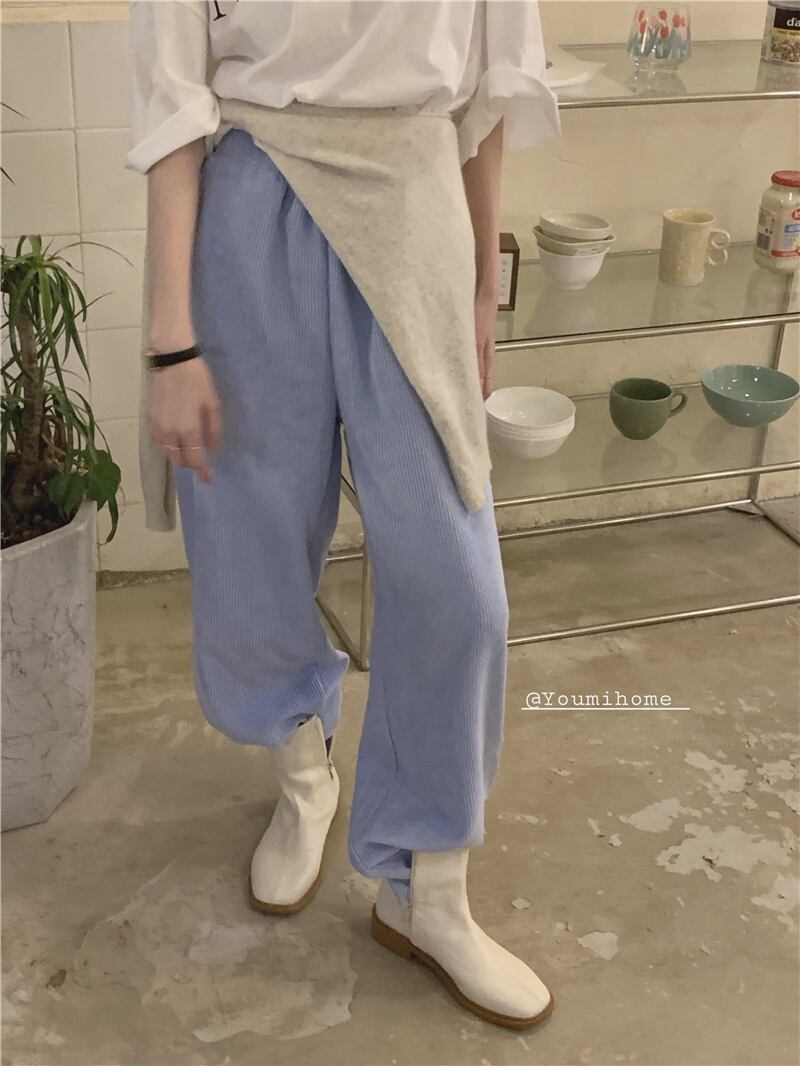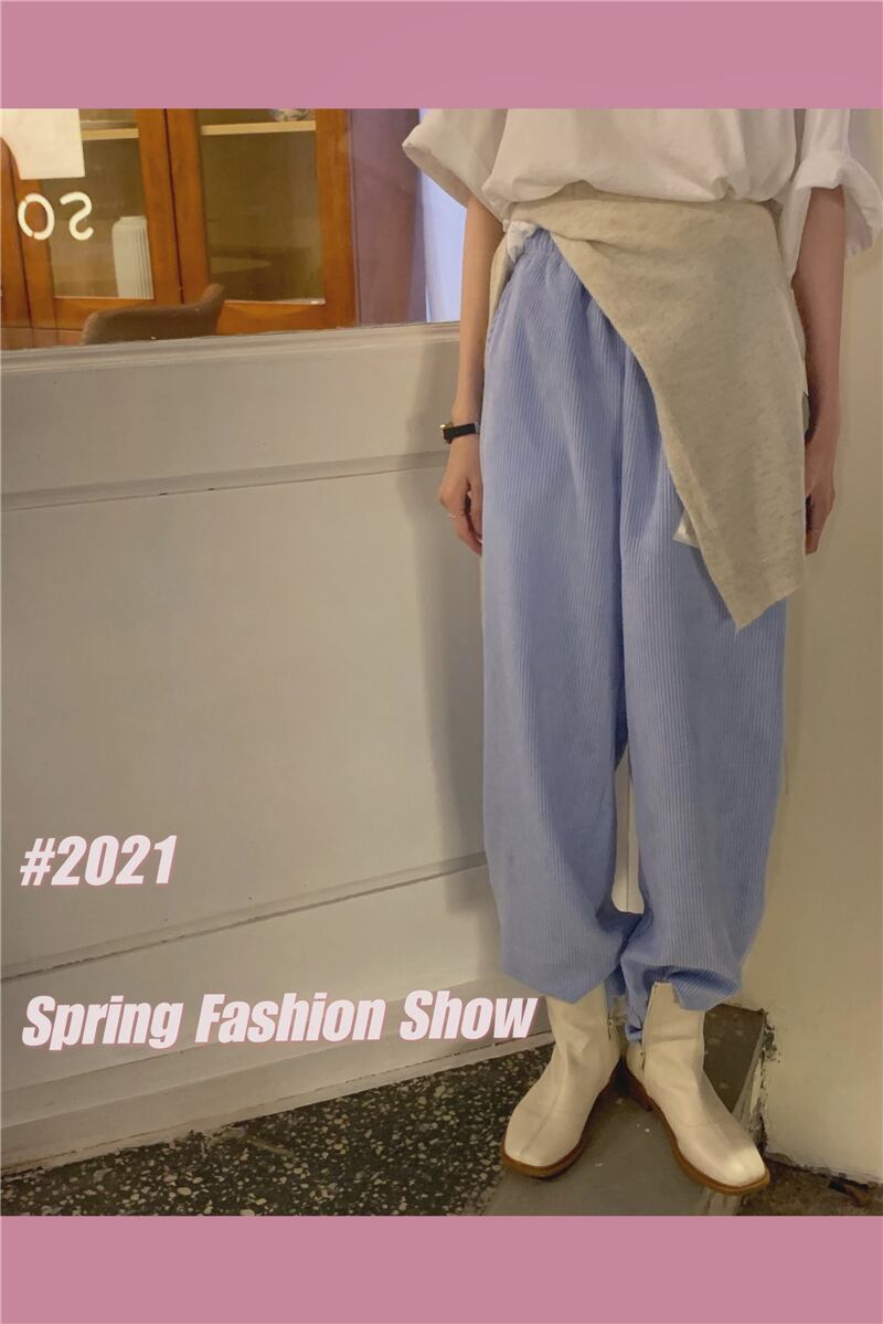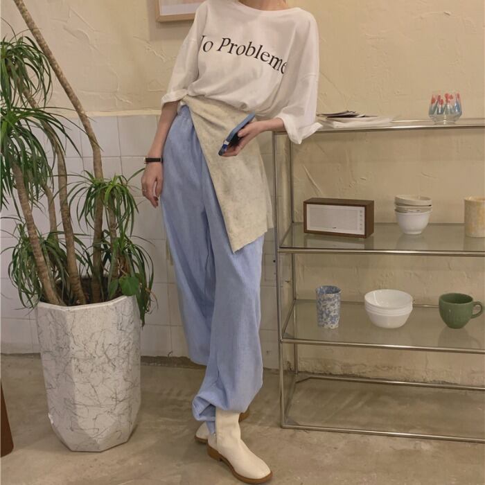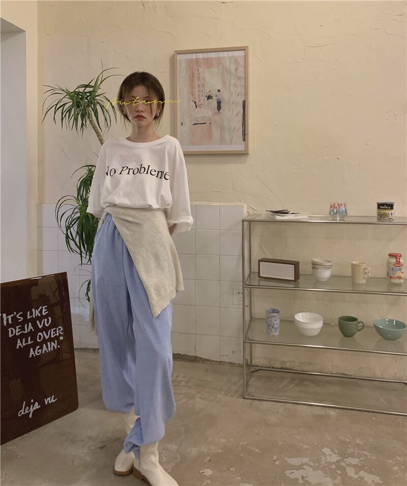 スプリングホワイトTシャツ ブルーカジュアルパンツ 春物 モンロー34048679561
