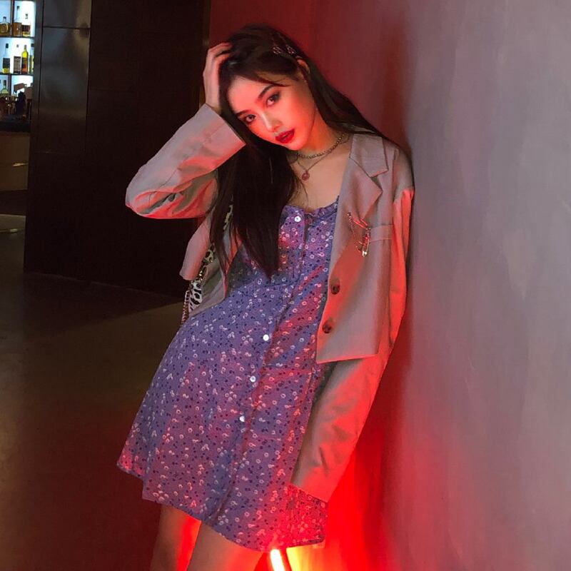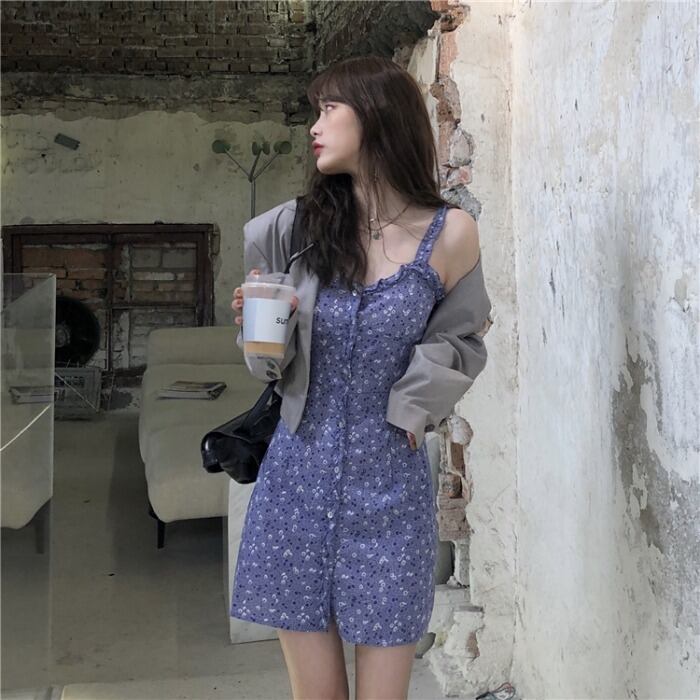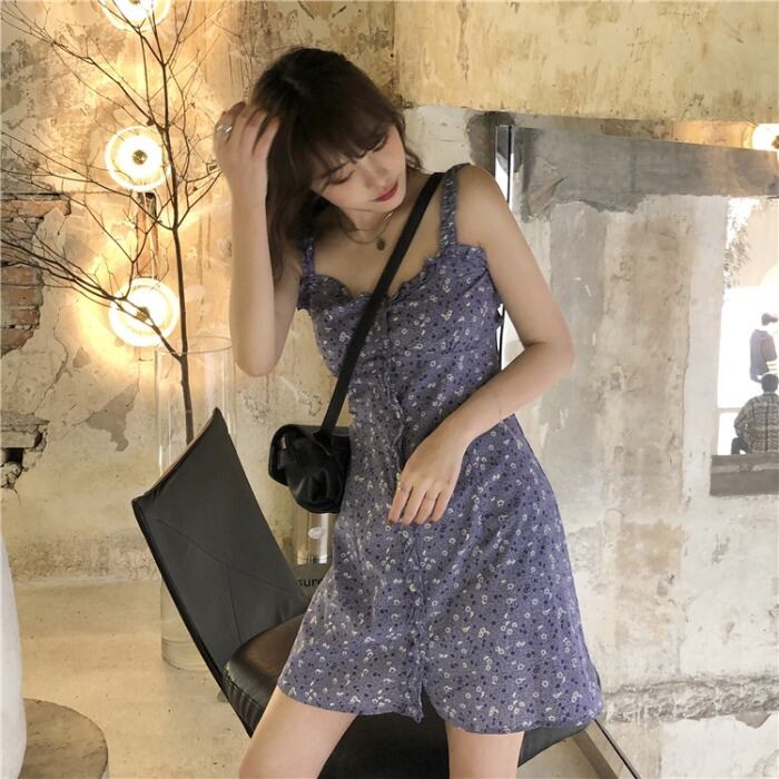 ドレス レディーススプリングショートスカート スタンダードフローラル レトロ 春物 花柄 パープル モンロー3622904298
