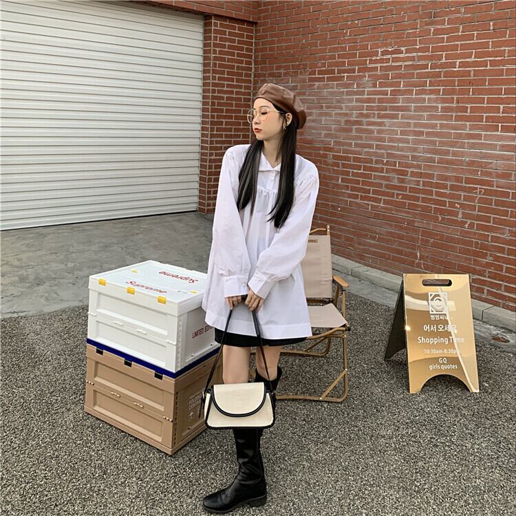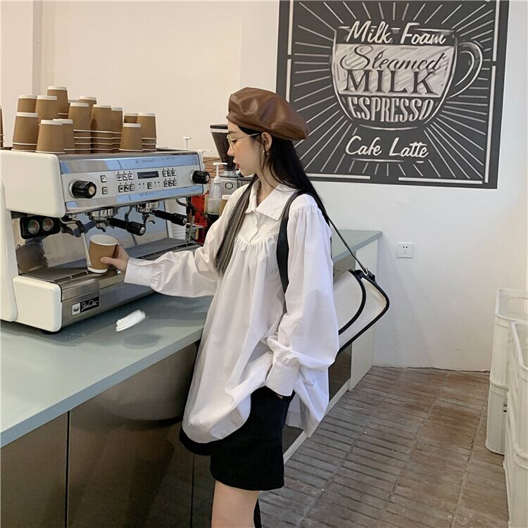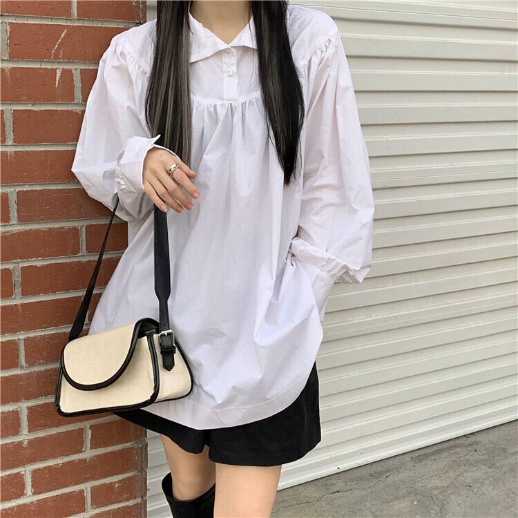 ホワイトシャツ スプリングルーズトップス ロング 春物 モンロー78602999148