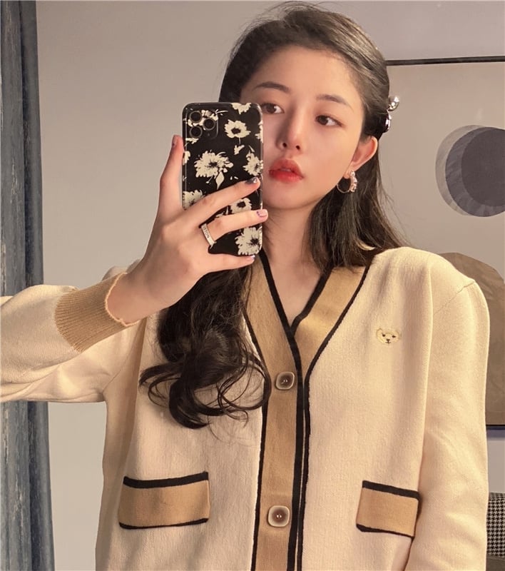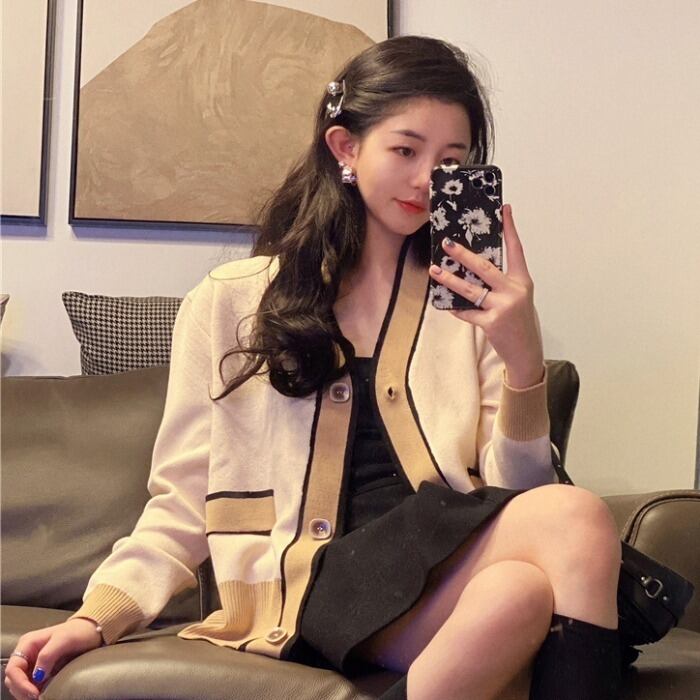 スタンダードVネックセーター レディースルーズショートカーディガンジャケット スプリング ロング レトロ 春物 モンロー38738209392