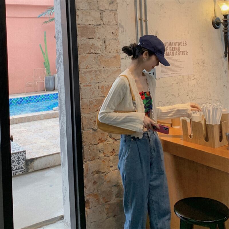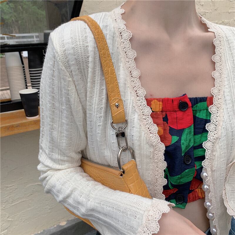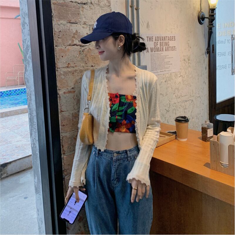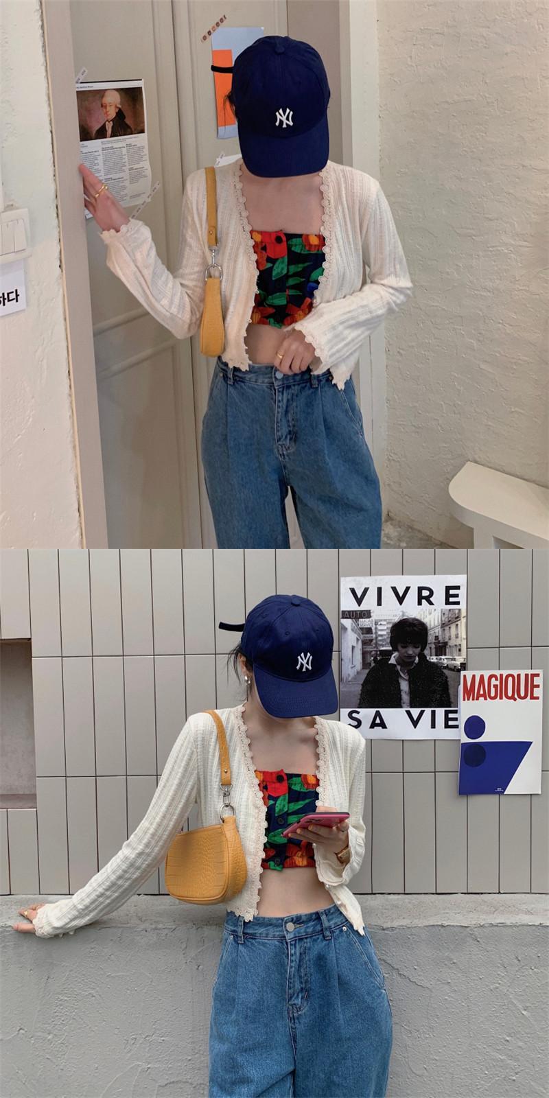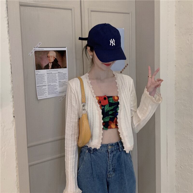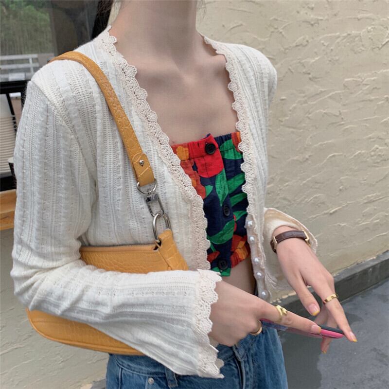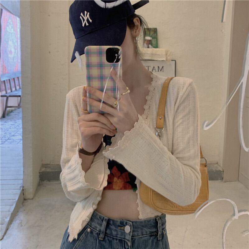 薄手レースニットカーディガンショートジャケット スプリングVネックセーター レディース 春物 モンロー32070371164