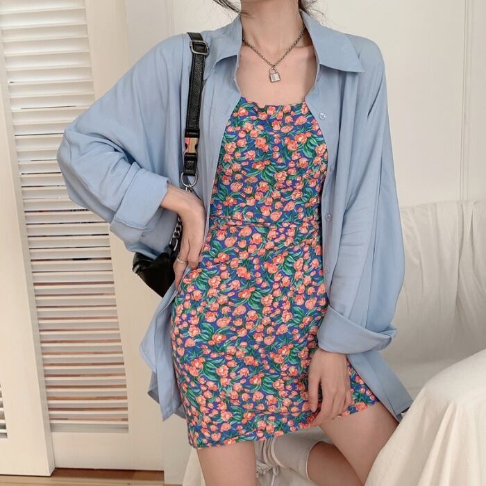 スタンダードフローラルドレス スプリングスカート 薄手ショート レトロ 春物 花柄 モンロー5787573550
