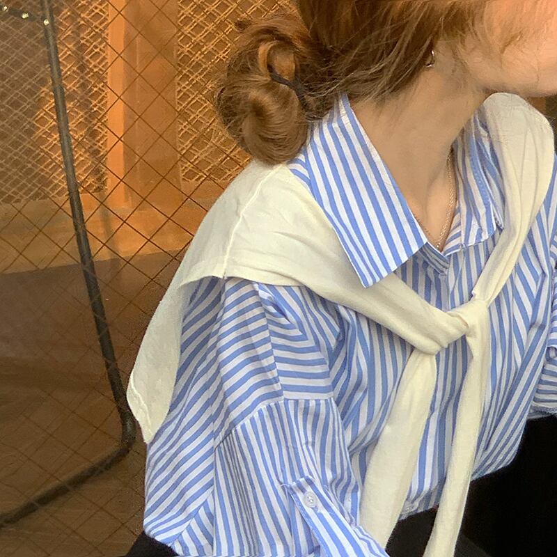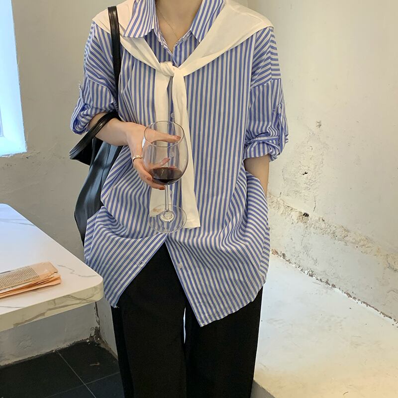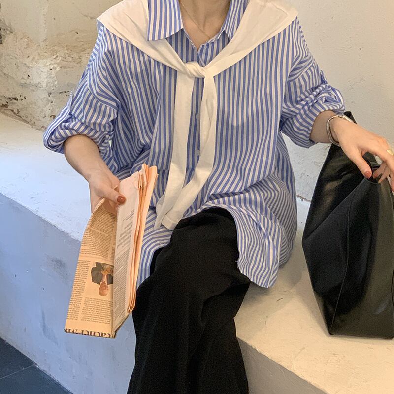 ストライプシャツ ジャケット スプリングトップス ロング 春物 モンロー9540937023