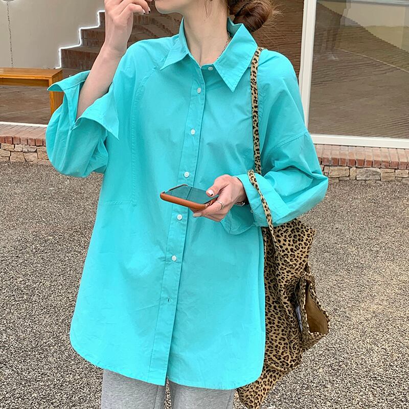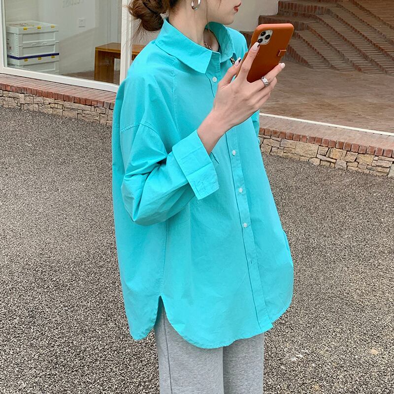 ソリッド カラーシャツ レディースルーズスプリングジャケット ロング 春物 ソリッドカラー モンロー45714266590