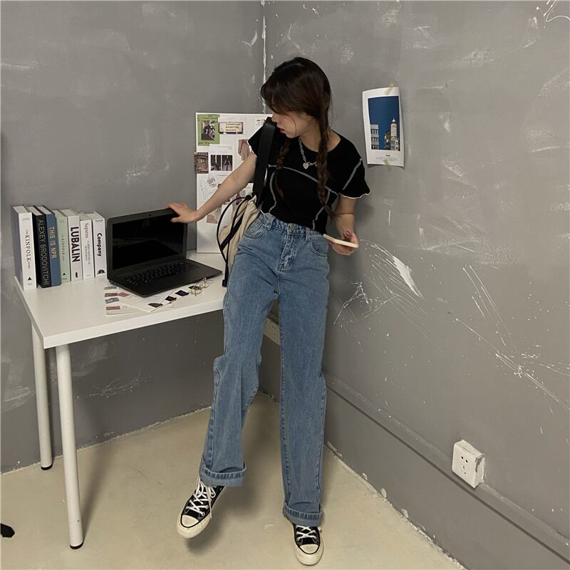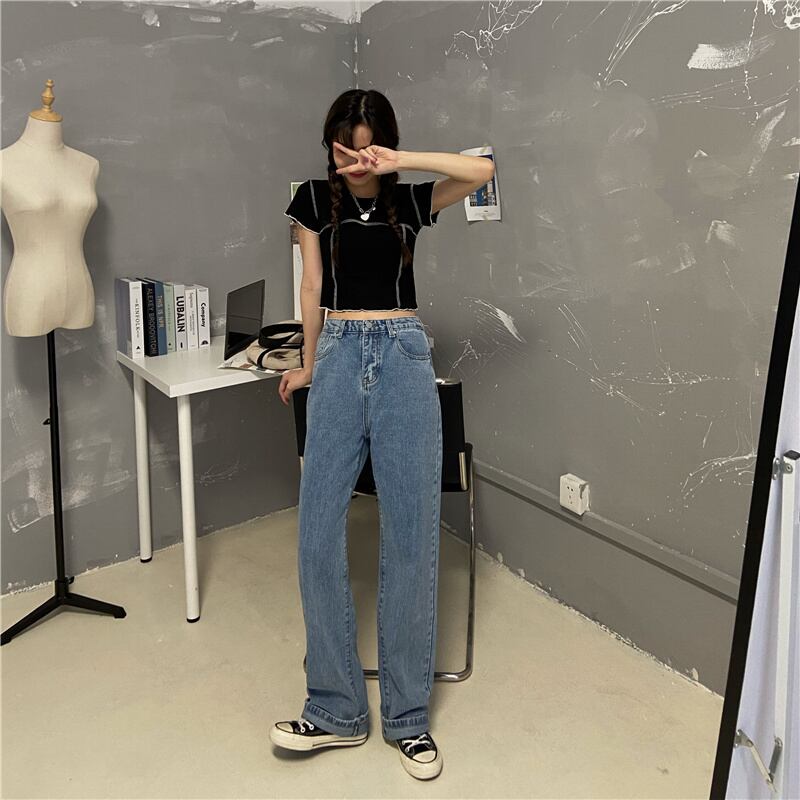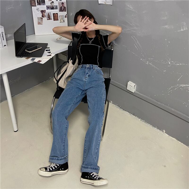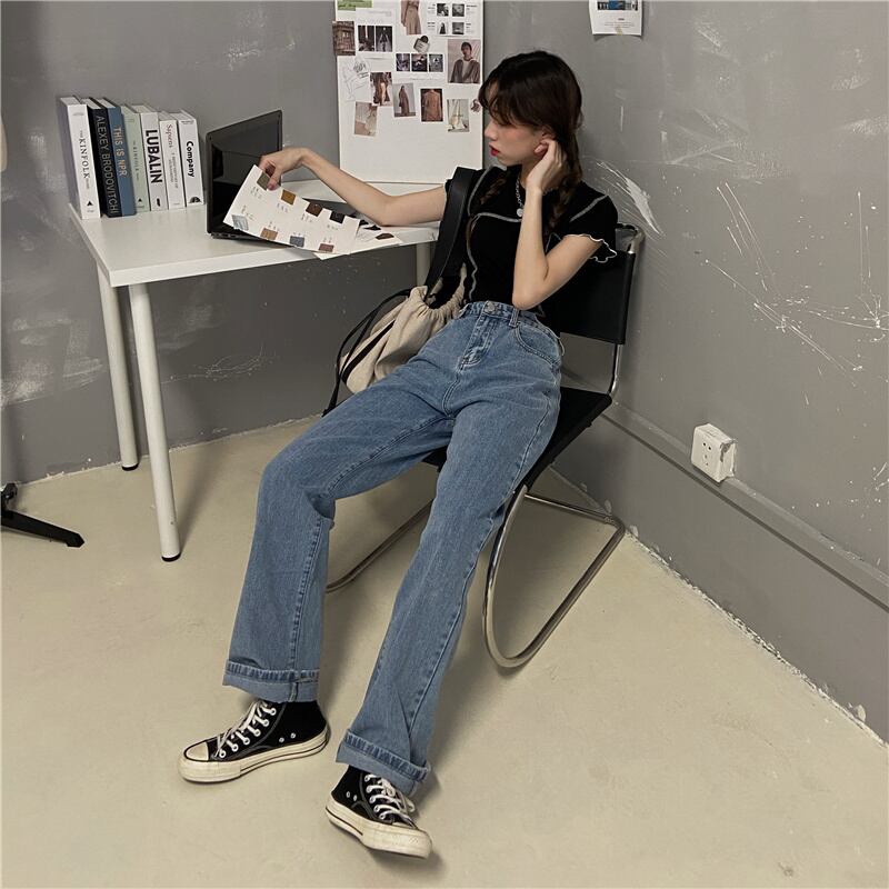 パンツ ハイウェスト薄手ルーズジーンズ スプリング 春物 モンロー35559722019