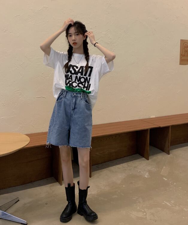 スタンダードジーンズ ショーツ レディースルーズパンツ スプリングハイウェスト薄手 レトロ 春物 ブルマー モンロー40315858021