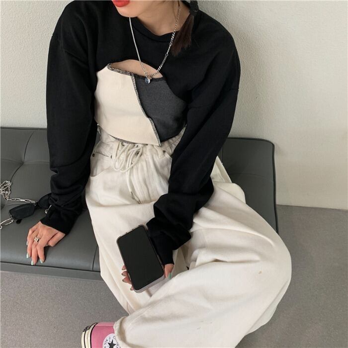 ショートセーター ブラウス レディーススプリングルーズ ロング 春物 モンロー3754981575