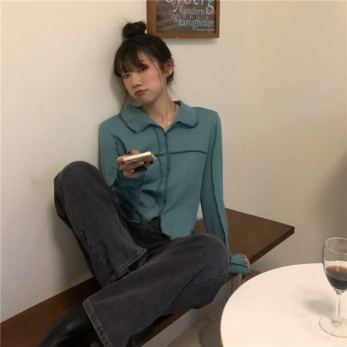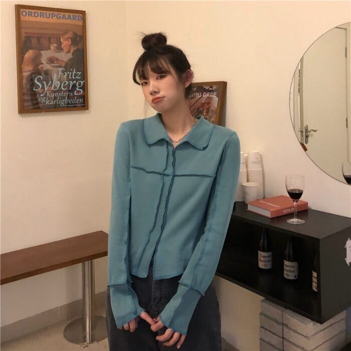 Tシャツ シャツ スプリングショートカラートップス ロング 春物 モンロー94869725300