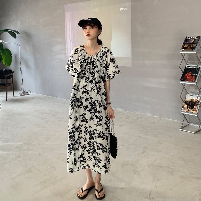スタンダードフローラルドレス スカート スプリングAライン レトロ 春物 花柄 モンロー58647165663