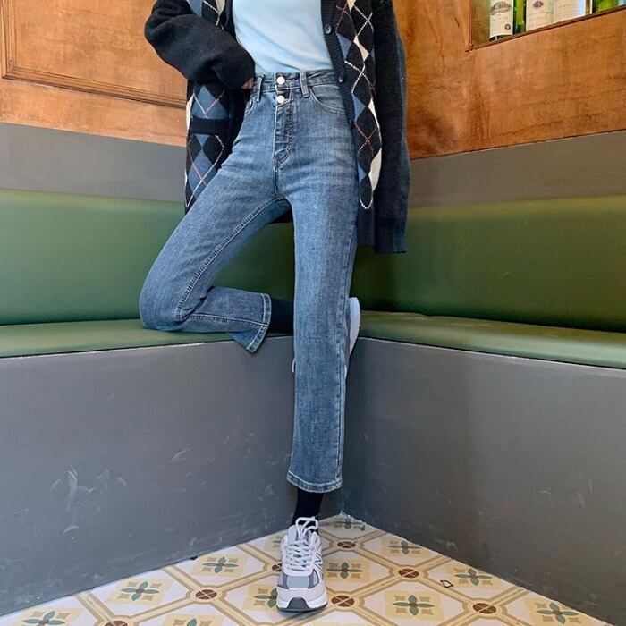 スタンダードハイウェストウェスト薄手ジーンズ レディーススプリングパンツ レトロ 春物 モンロー59190171037
