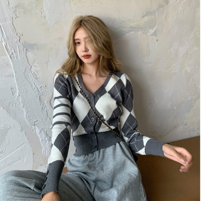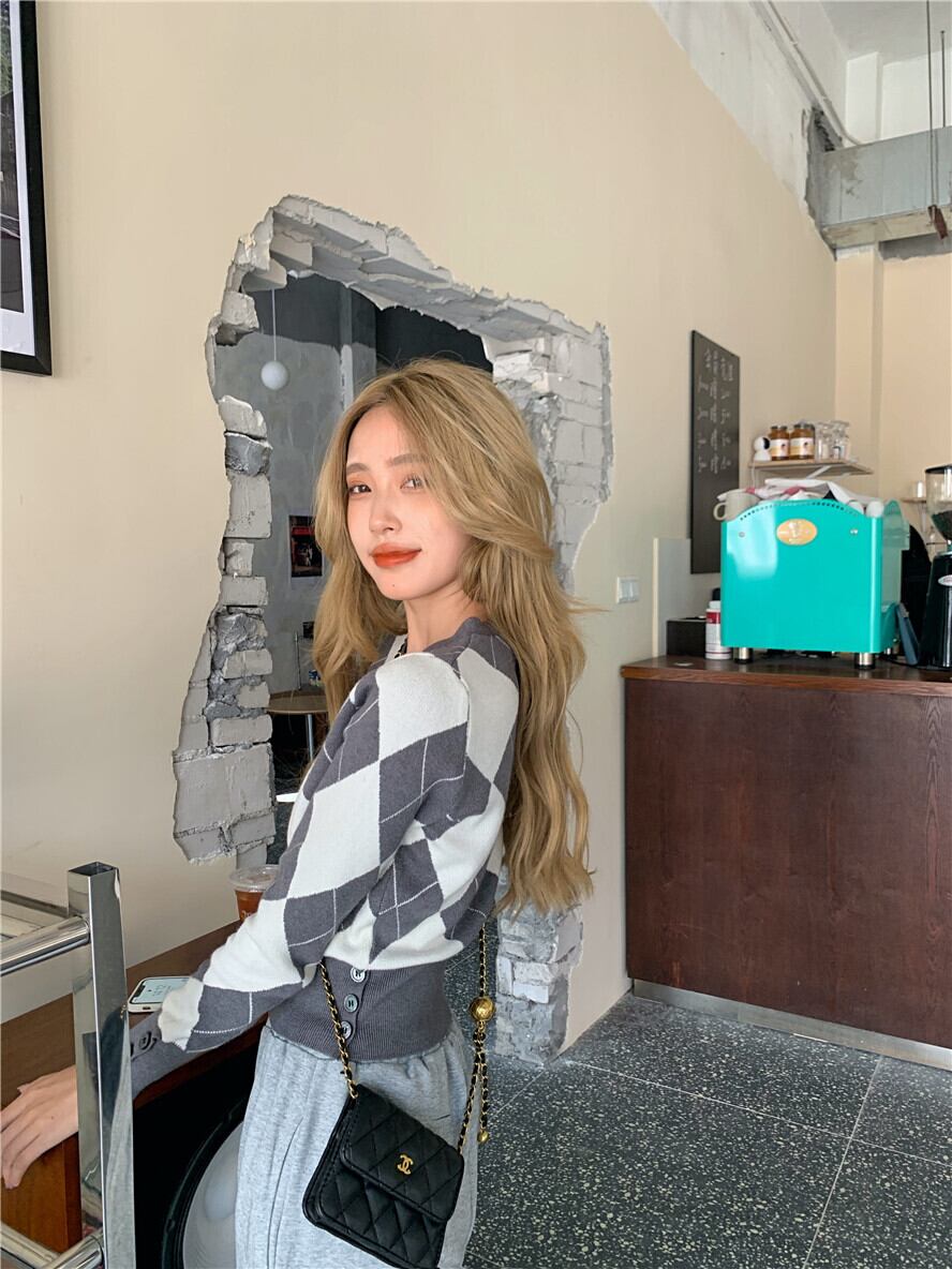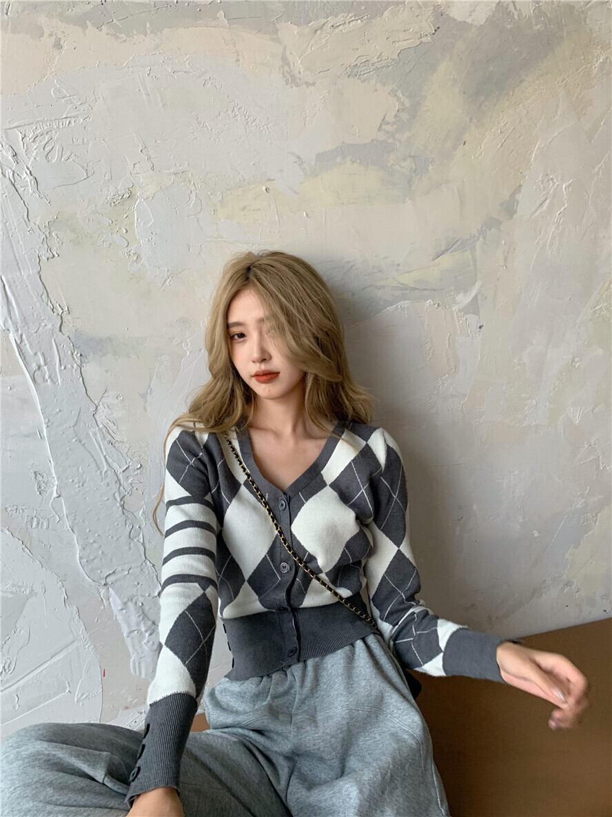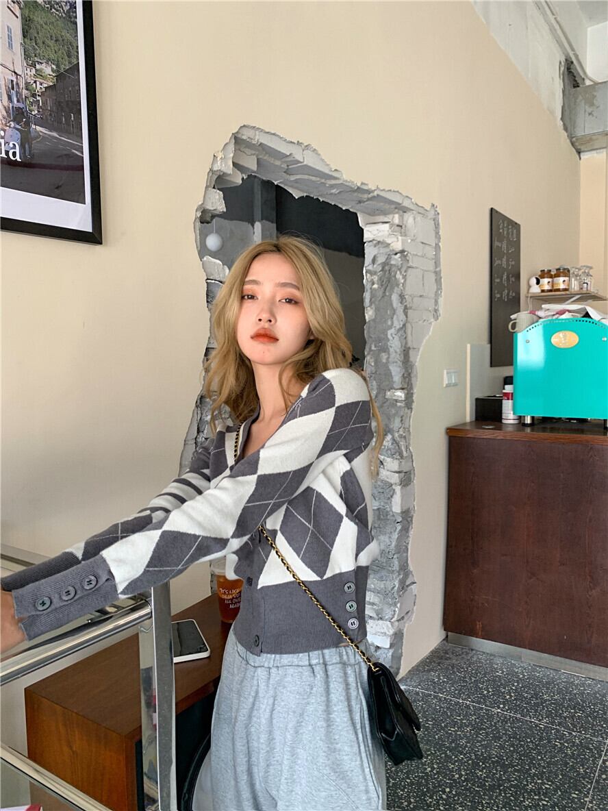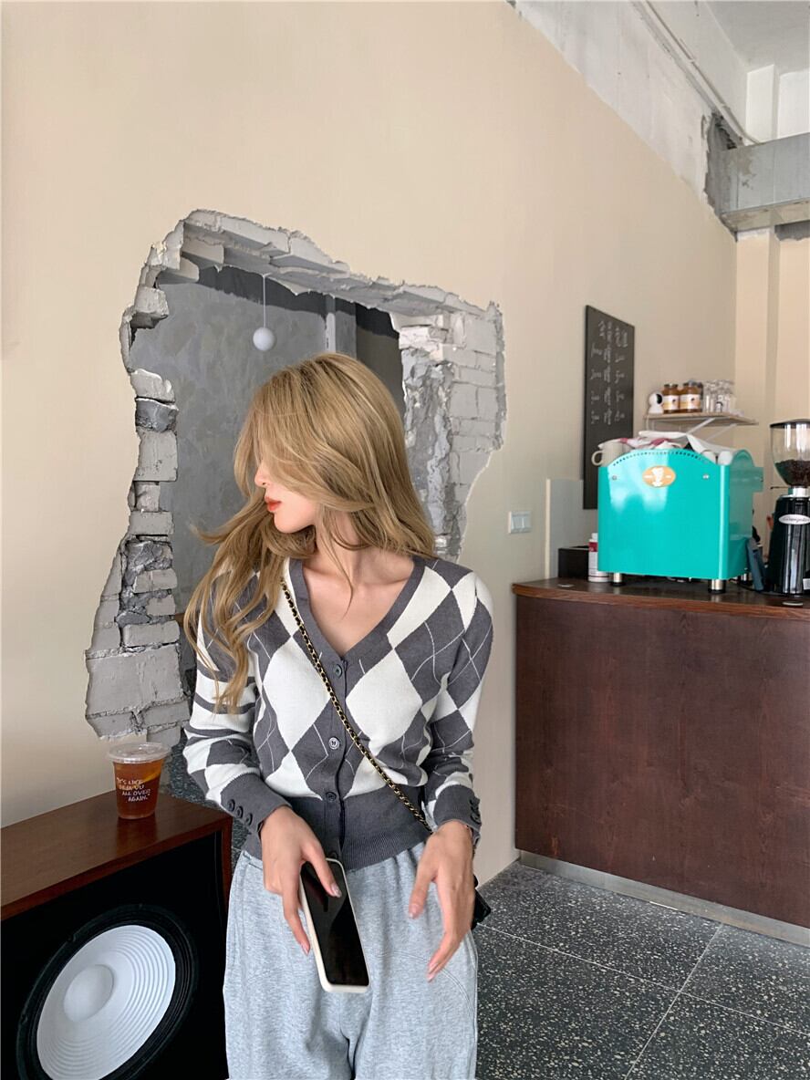 スタイルVネックニットカーディガンセーター スプリングクロップドトップス コート 春物 モンロー8415579896