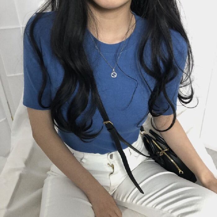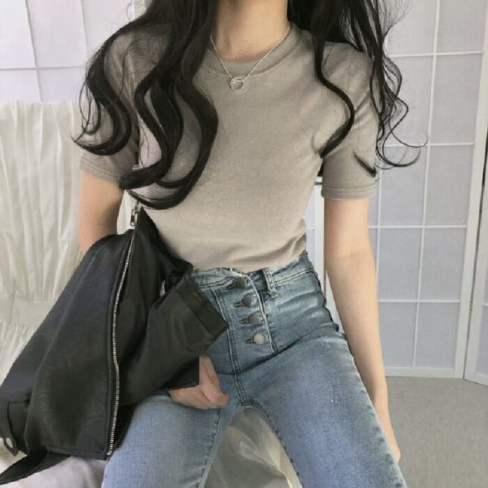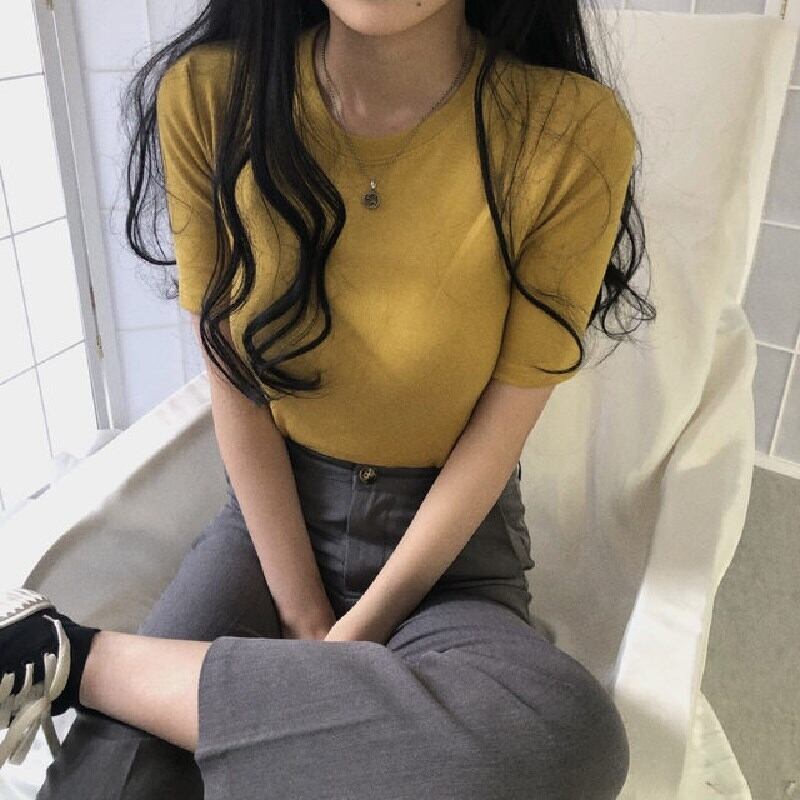 ソリッド カラースリムトップス サマールーズTシャツ シャツ 夏物 ソリッドカラー モンロー46547147175