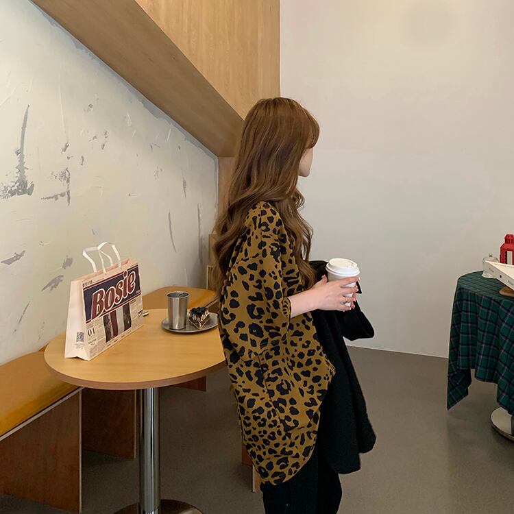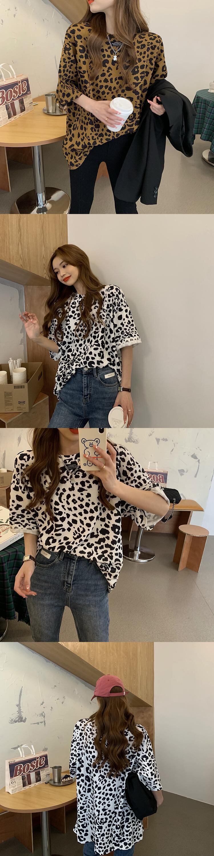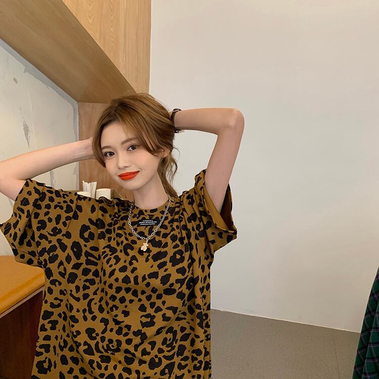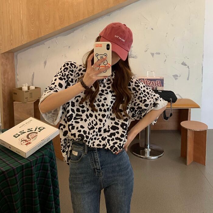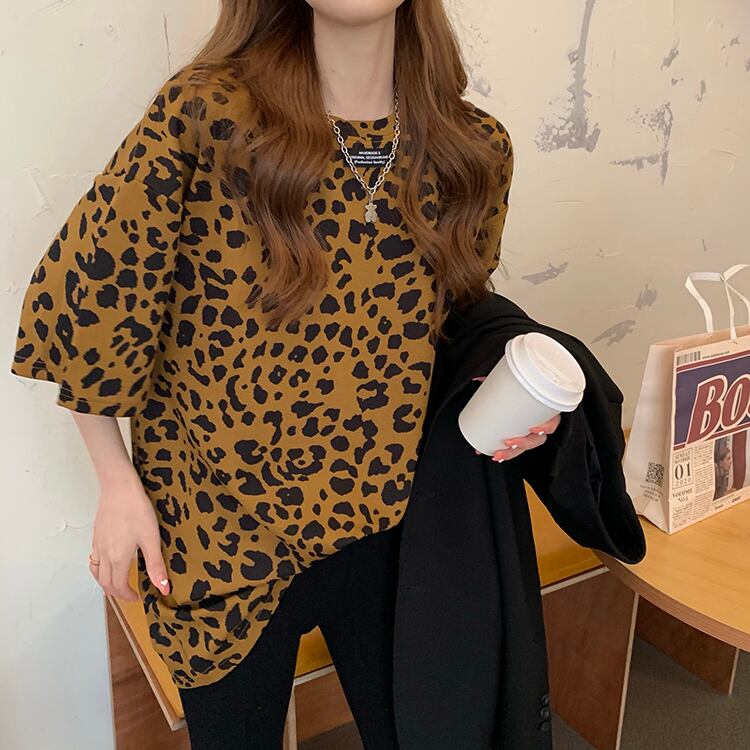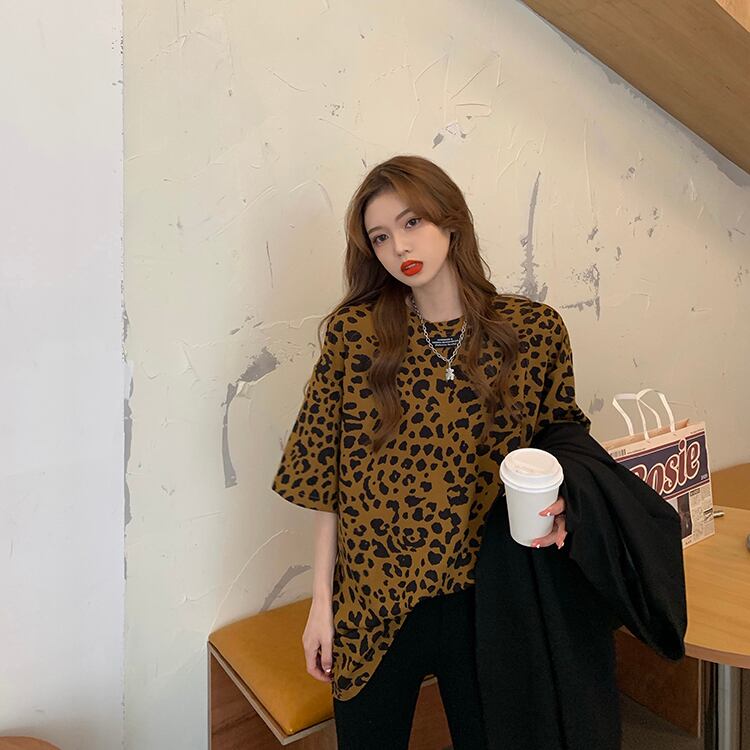 スタンダードレオパードプリント柄Tシャツ シャツ レディーススプリングスタイルルーズトップス レトロ 春物 モンロー72143239333