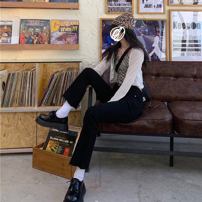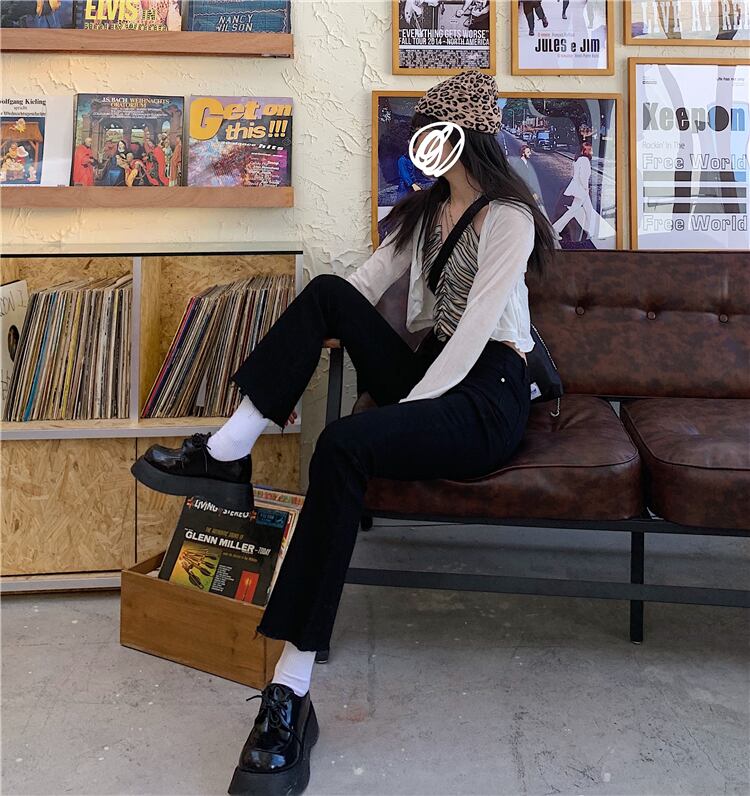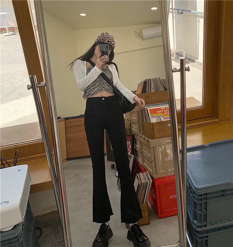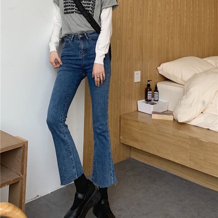 ブラックパンツ ハイウェストジーンズ スプリングルーズ レッド 春物 モンロー9213209526