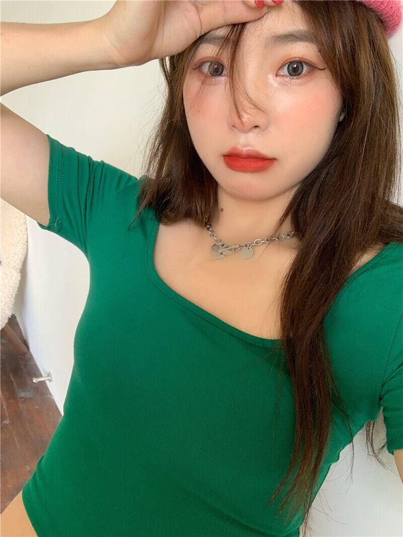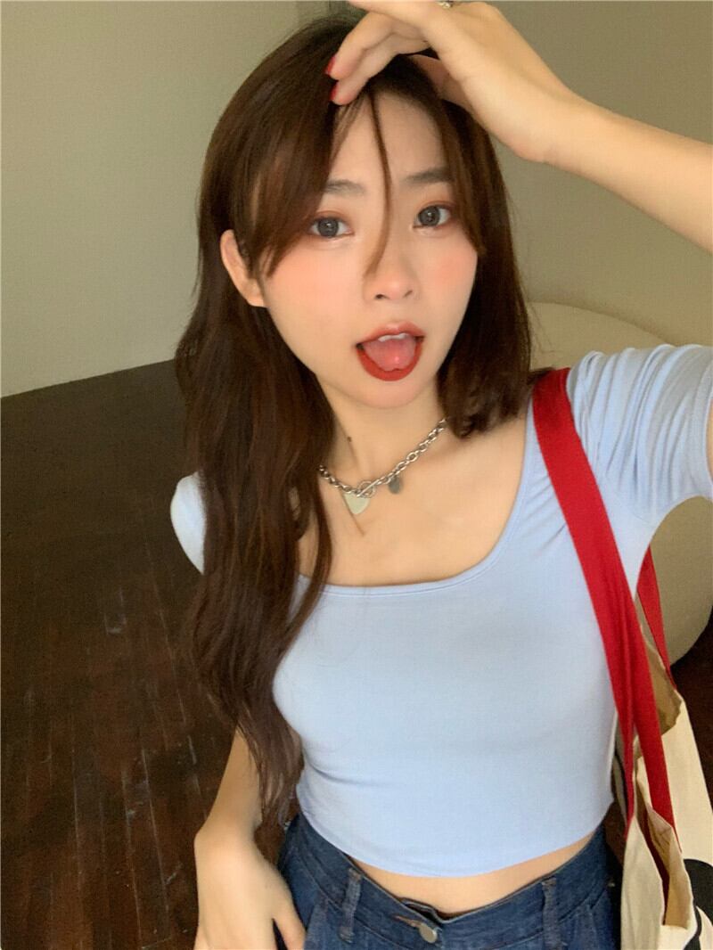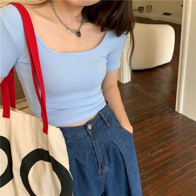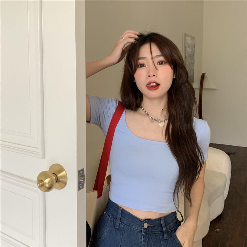 スリム薄手ソリッド カラーシャツ サマーTシャツ クロップドトップス 夏物 ソリッドカラー モンロー8882855725