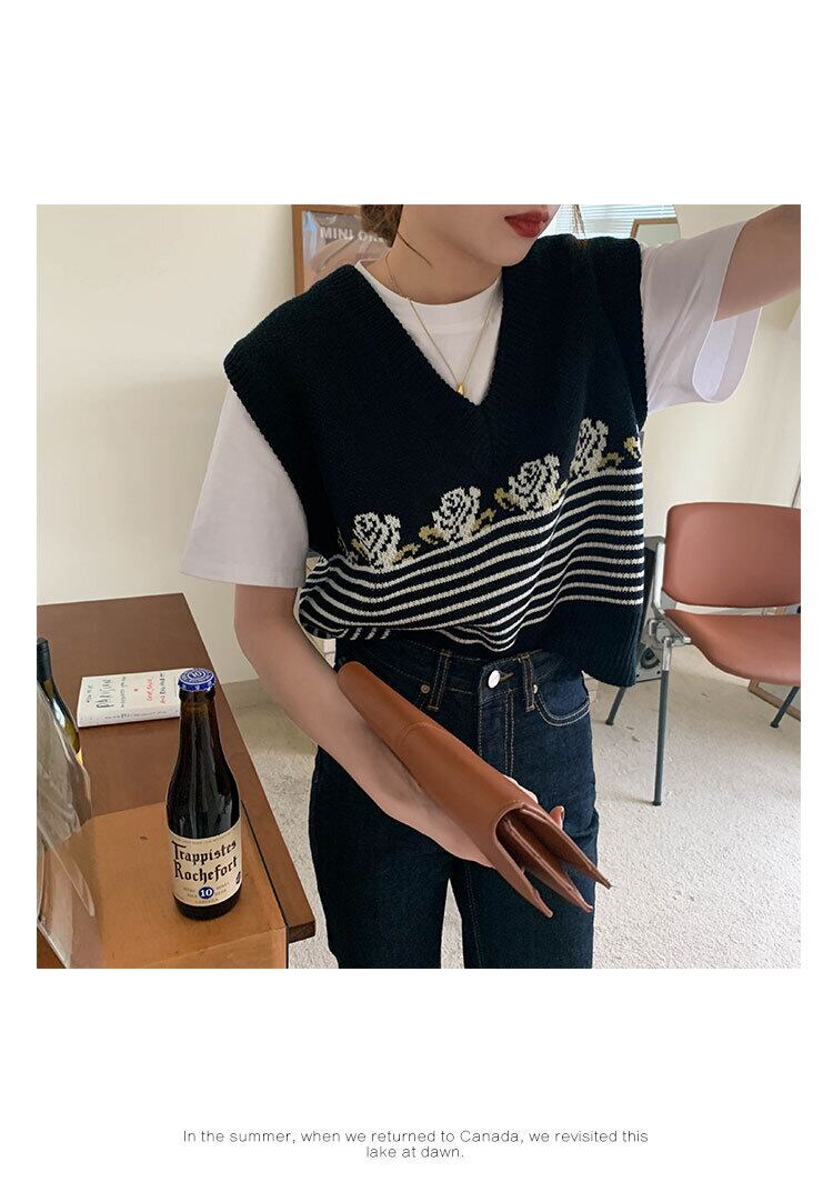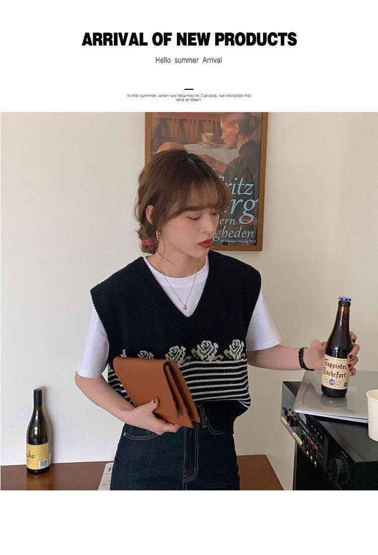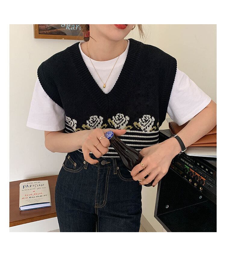 スタンダードセーター Vネックニットスプリングルーズショートトップス レトロ 春物 モンロー20985488413