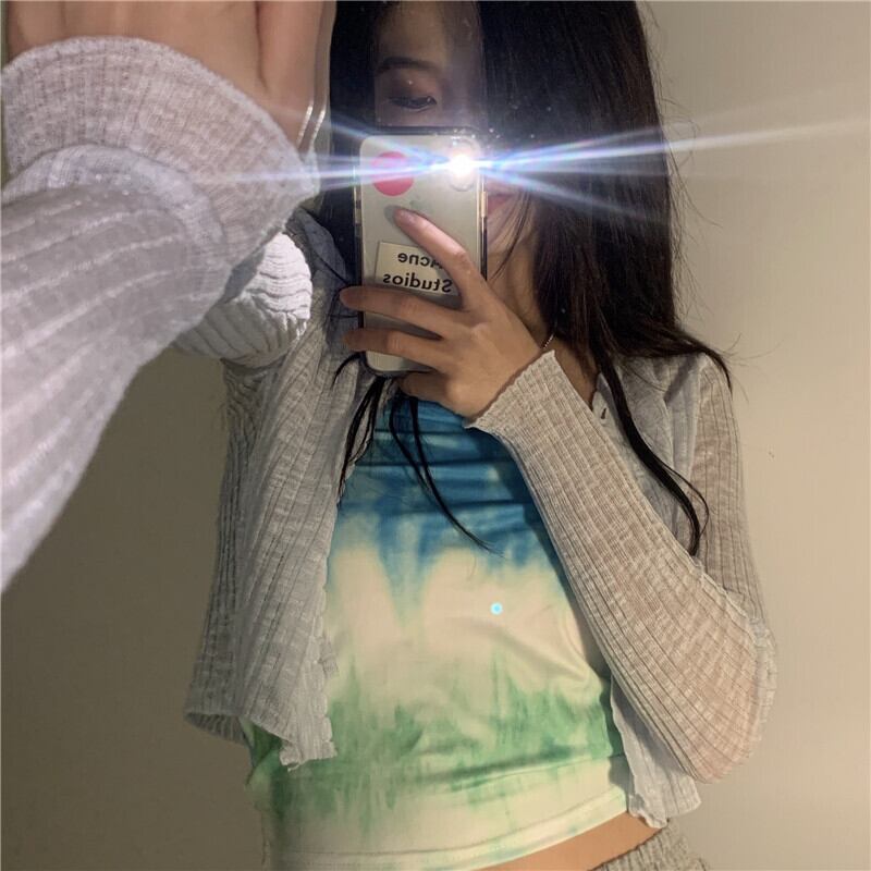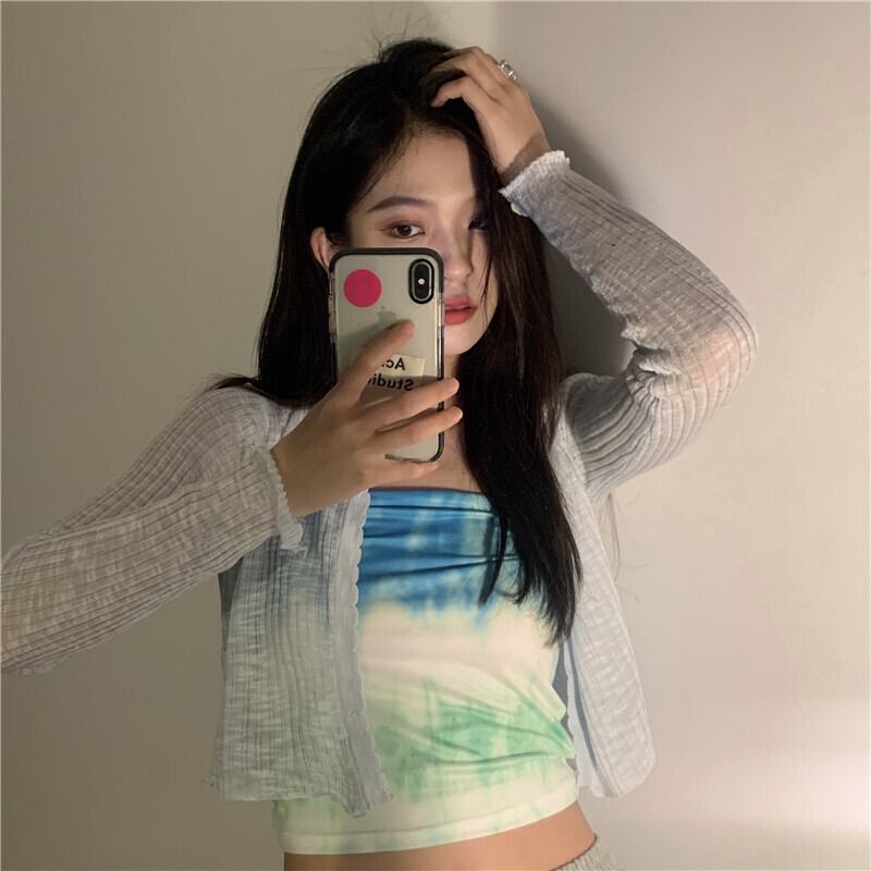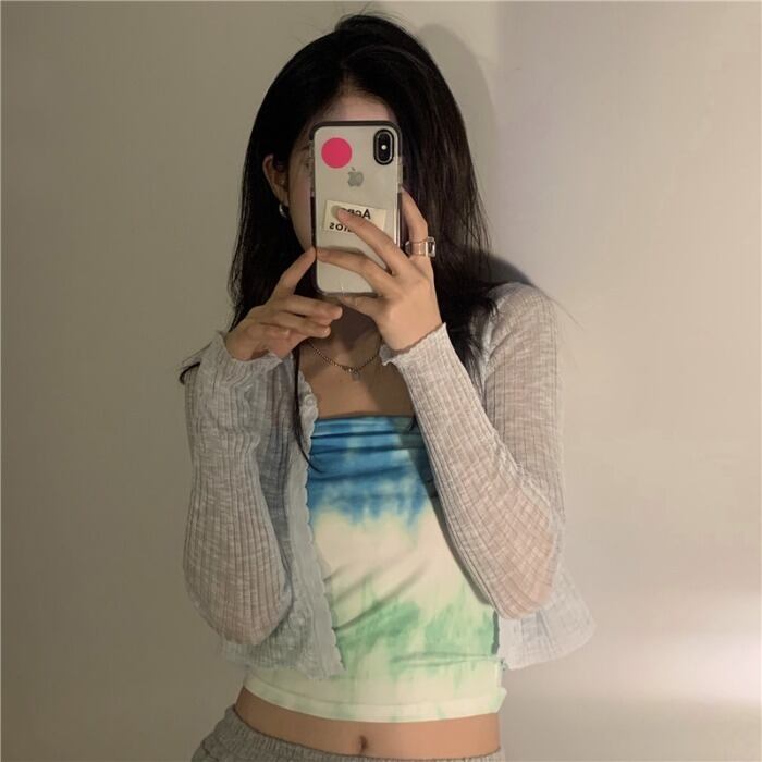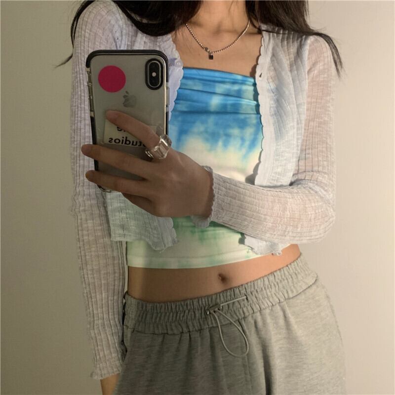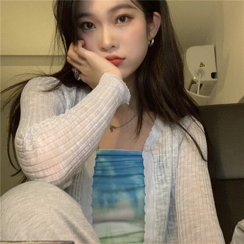 Vネックニットカーディガン薄手セーター スプリングショートジャケット ロング 春物 モンロー4283192125