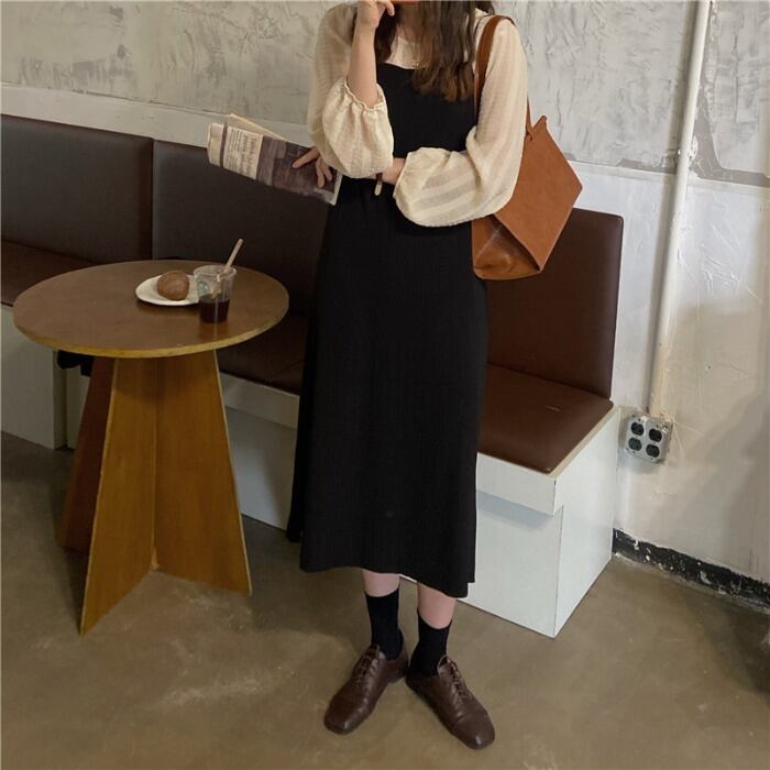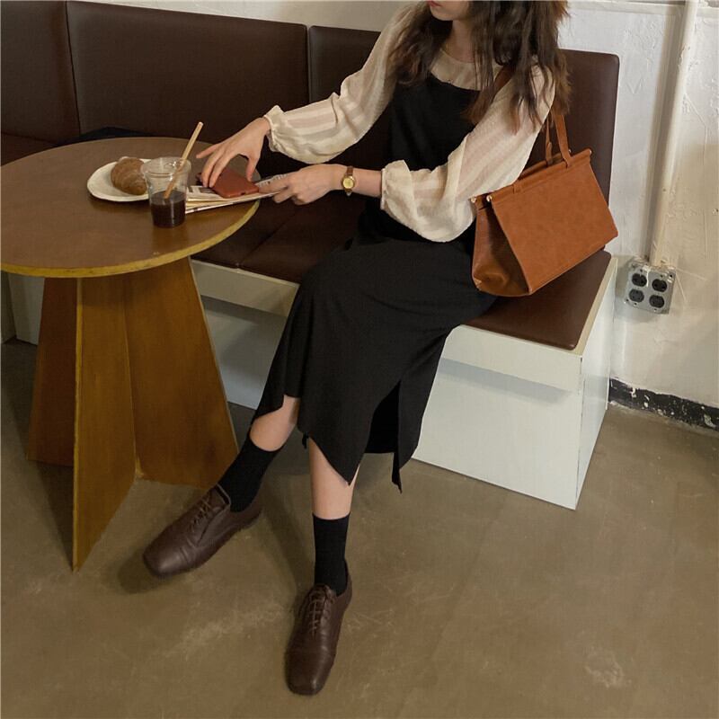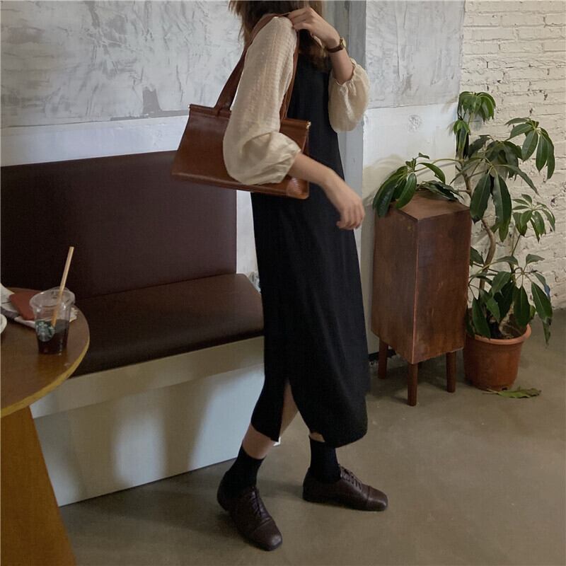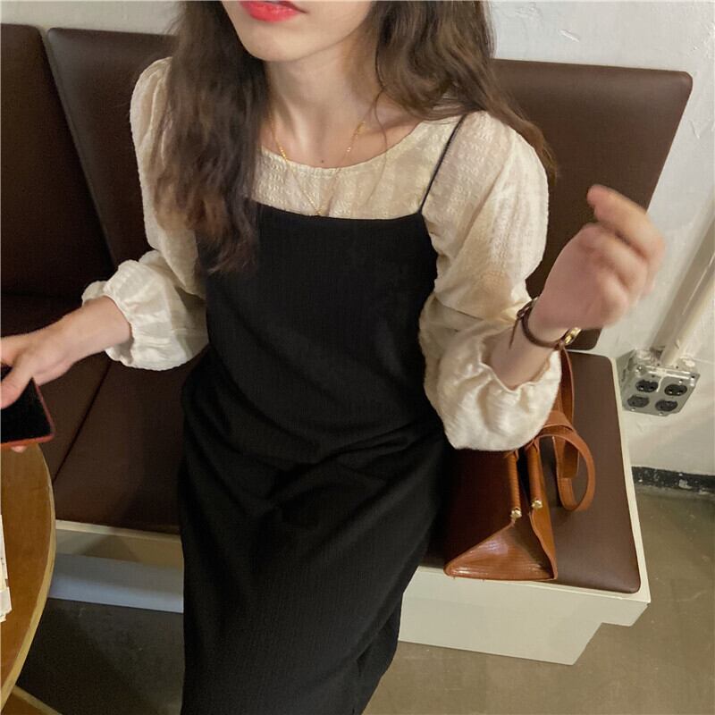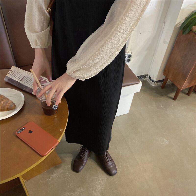 スタンダードブラックドレス スプリングスタイルロングスカート レトロ 春物 モンロー3146420308