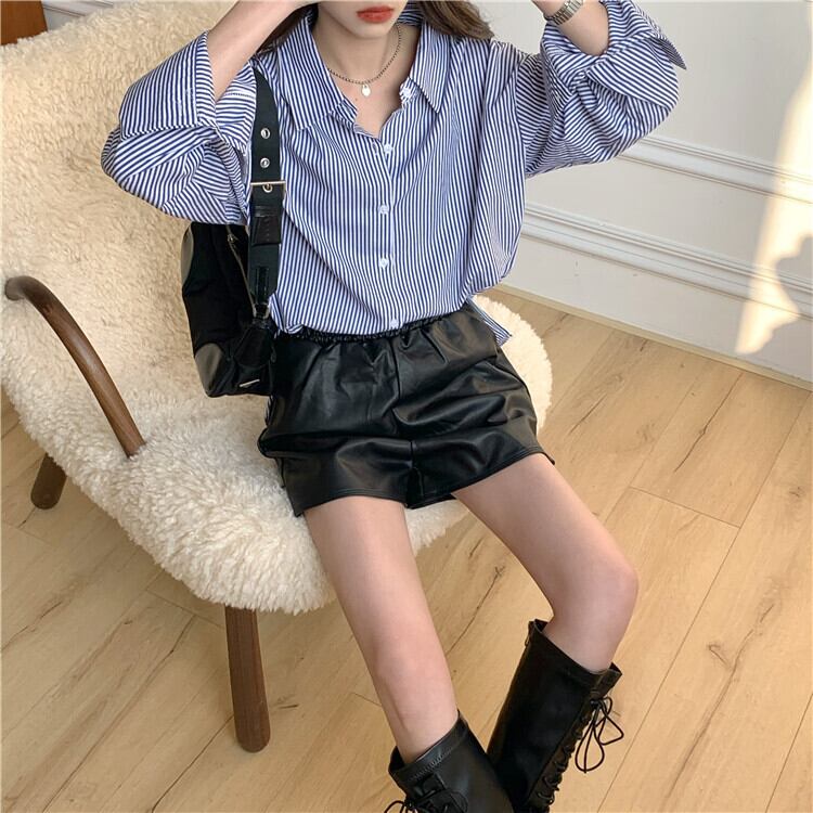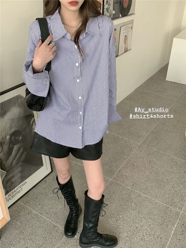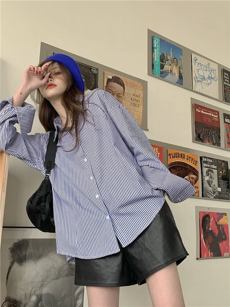 ストライプシャツ ジャケット ルーズスプリングトップス ロング 春物 モンロー72164186265
