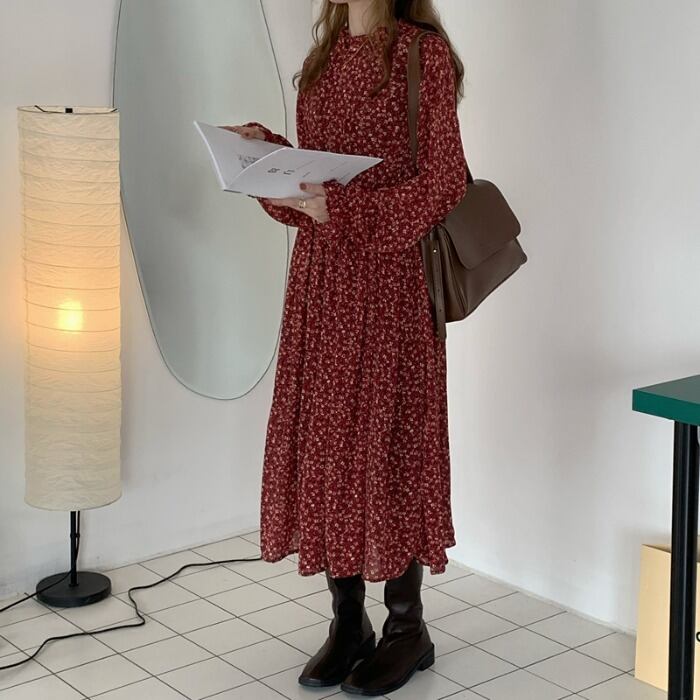 レッドドレス スプリングスタンダードスカート レトロ 春物 モンロー91107546927