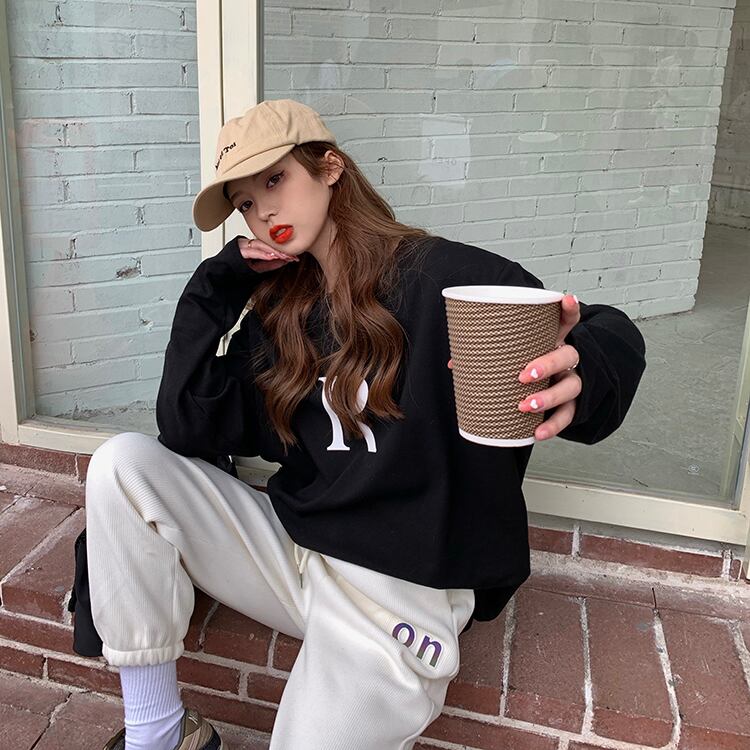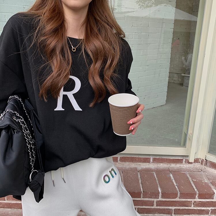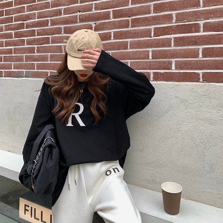 ルーズブラックシャツ レディーススプリングスタイルTシャツ トップス ロング 春物 モンロー98355115097