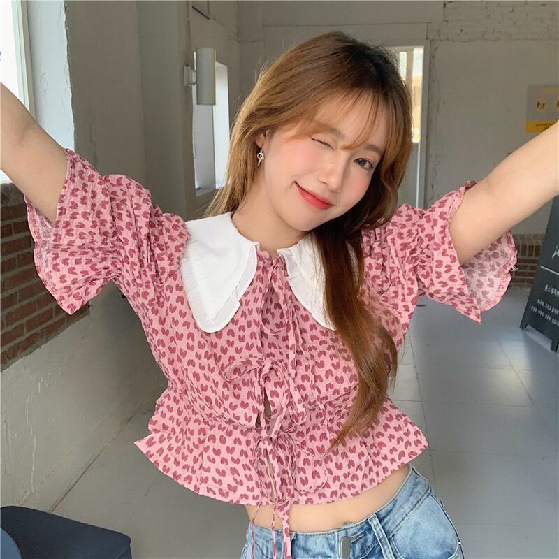 スタンダードフローラルシャツ ショートスプリングトップス レトロ 春物 花柄 モンロー67081442310