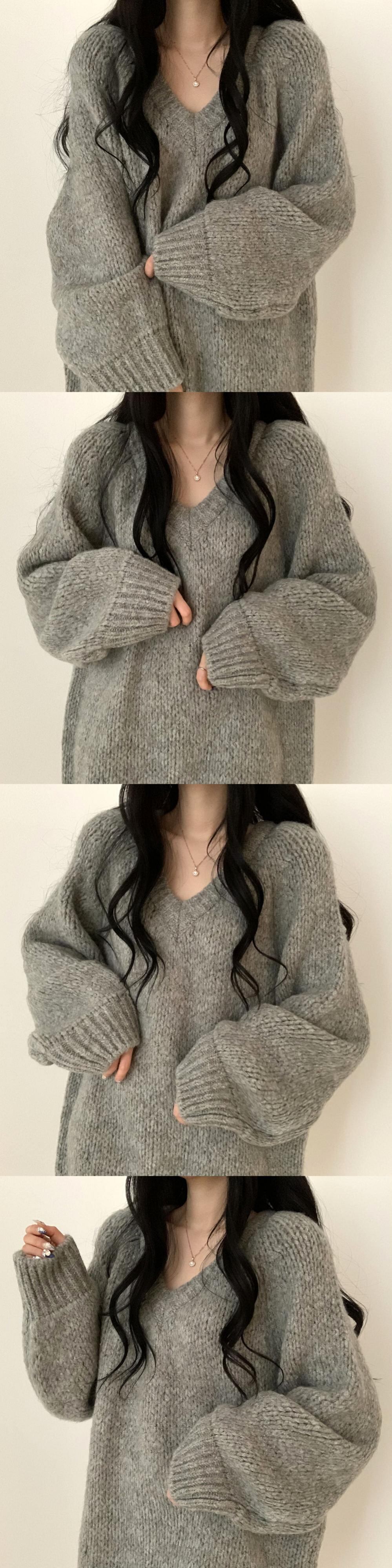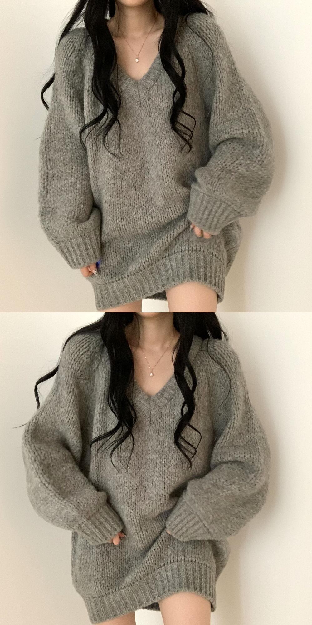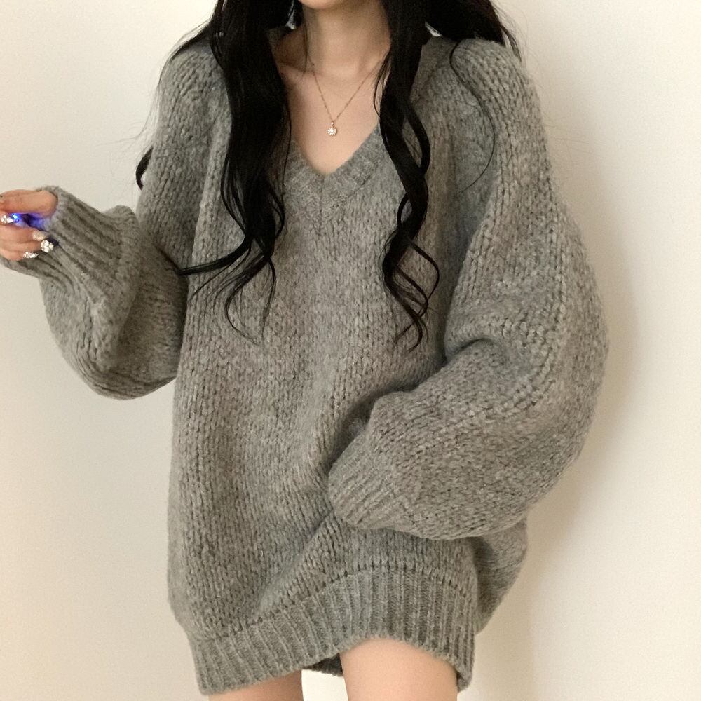 スタイルグレーVネックセーター スプリングルーズトップス 春物 モンロー58255373091