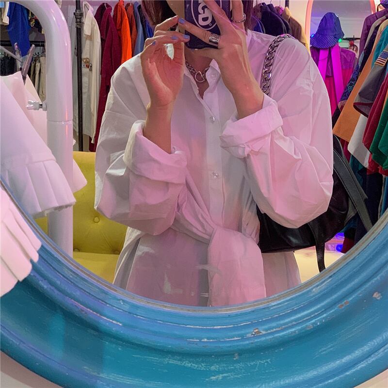 ホワイトシャツ スプリングスタンダードジャケット ロング レトロ 春物 モンロー4221577116
