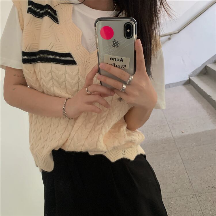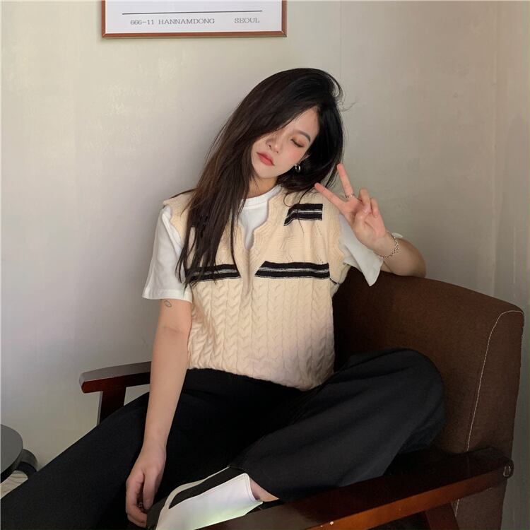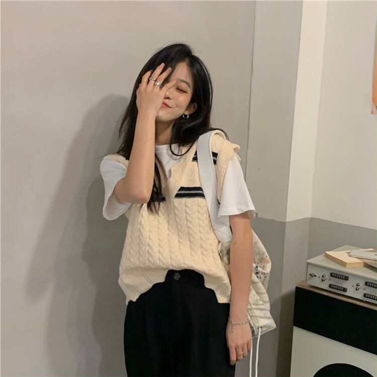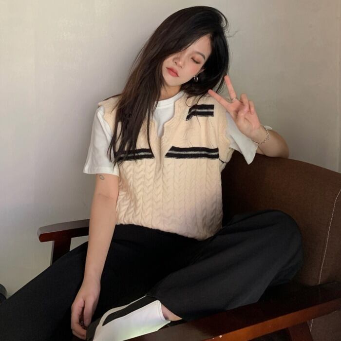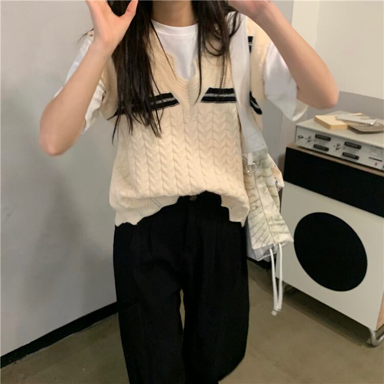 セーター ジャケット ルーズノースリーブトップス スプリングVネックニット 春物 モンロー20718659219