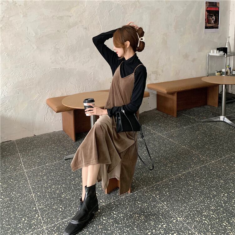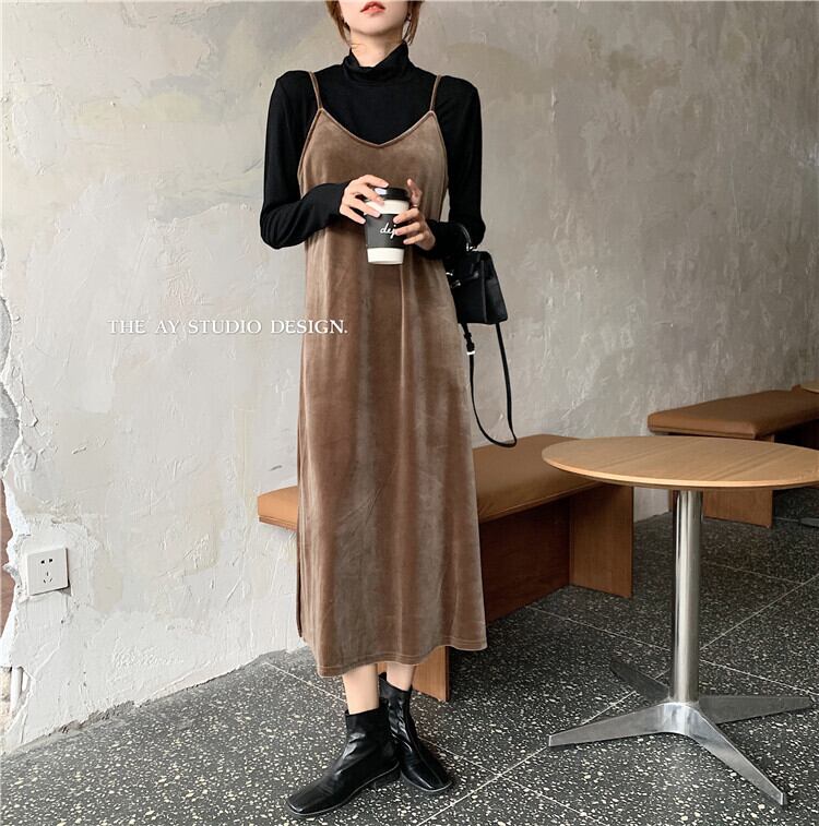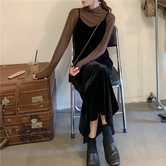 ベルベットドレス スタンダードスタイルブラックスカート 薄手ロング レトロ モンロー10226172573