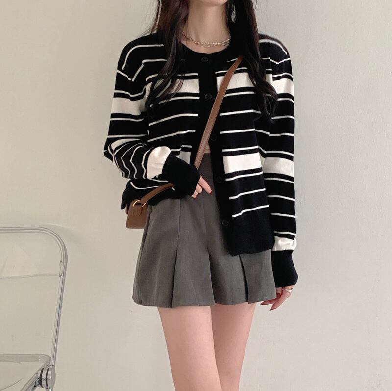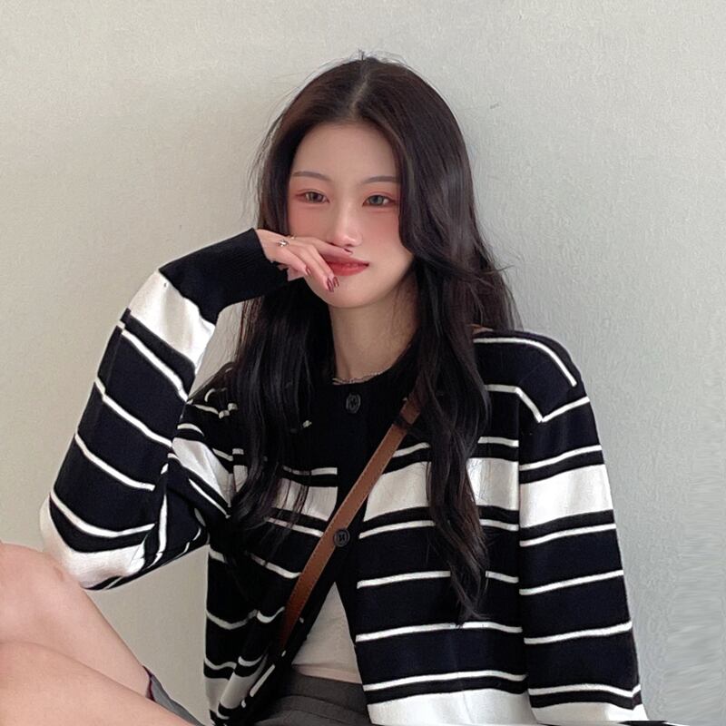 スタンダードストライプセーター ジャケット レディーススプリングルーズカーディガン ロング レトロ 春物 モンロー95565647545