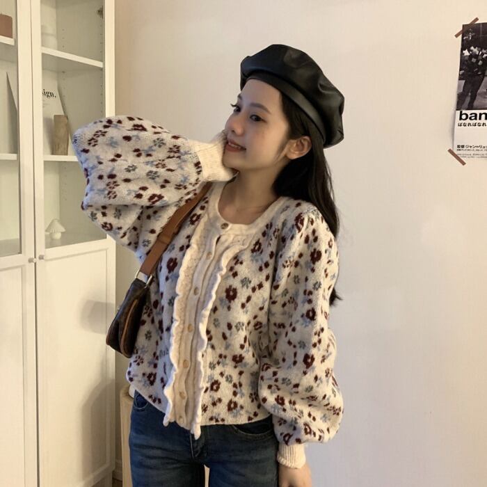 スタンダードニットセーター スプリングカーディガンショートトップス スタイルルーズコート ロング レトロ 春物 モンロー73524839766
