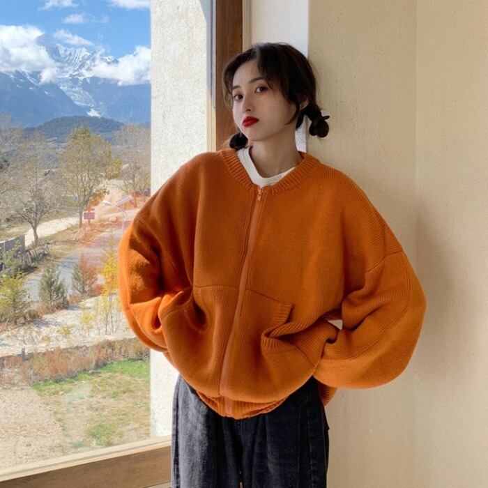 オレンジセーター コート ニットスプリングカーディガントップス 春物 モンロー68912196616