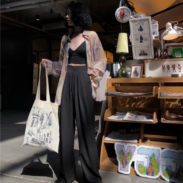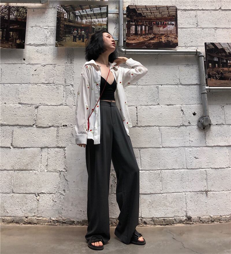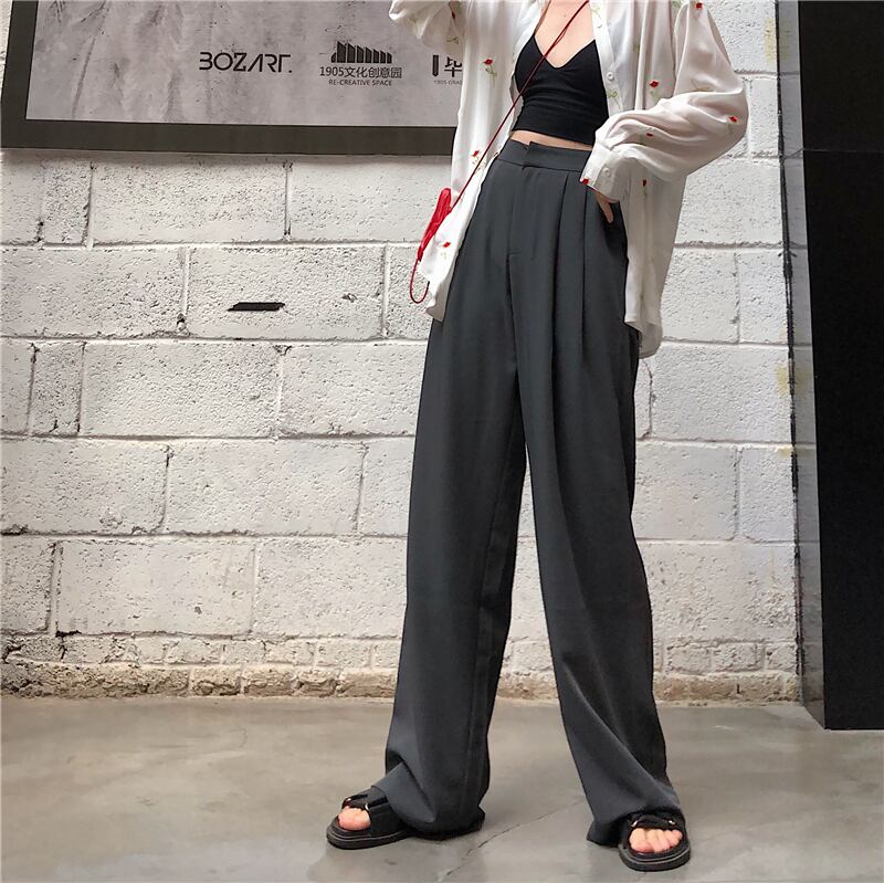 パンツ ハイウェストウェストカジュアルスプリングルーズブラック 春物 モンロー19771522832