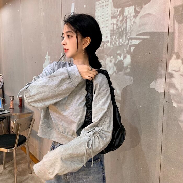 カラーバンドTシャツ シャツ スプリングルーズクロップドトップス スタイル 春物 モンロー54784065285